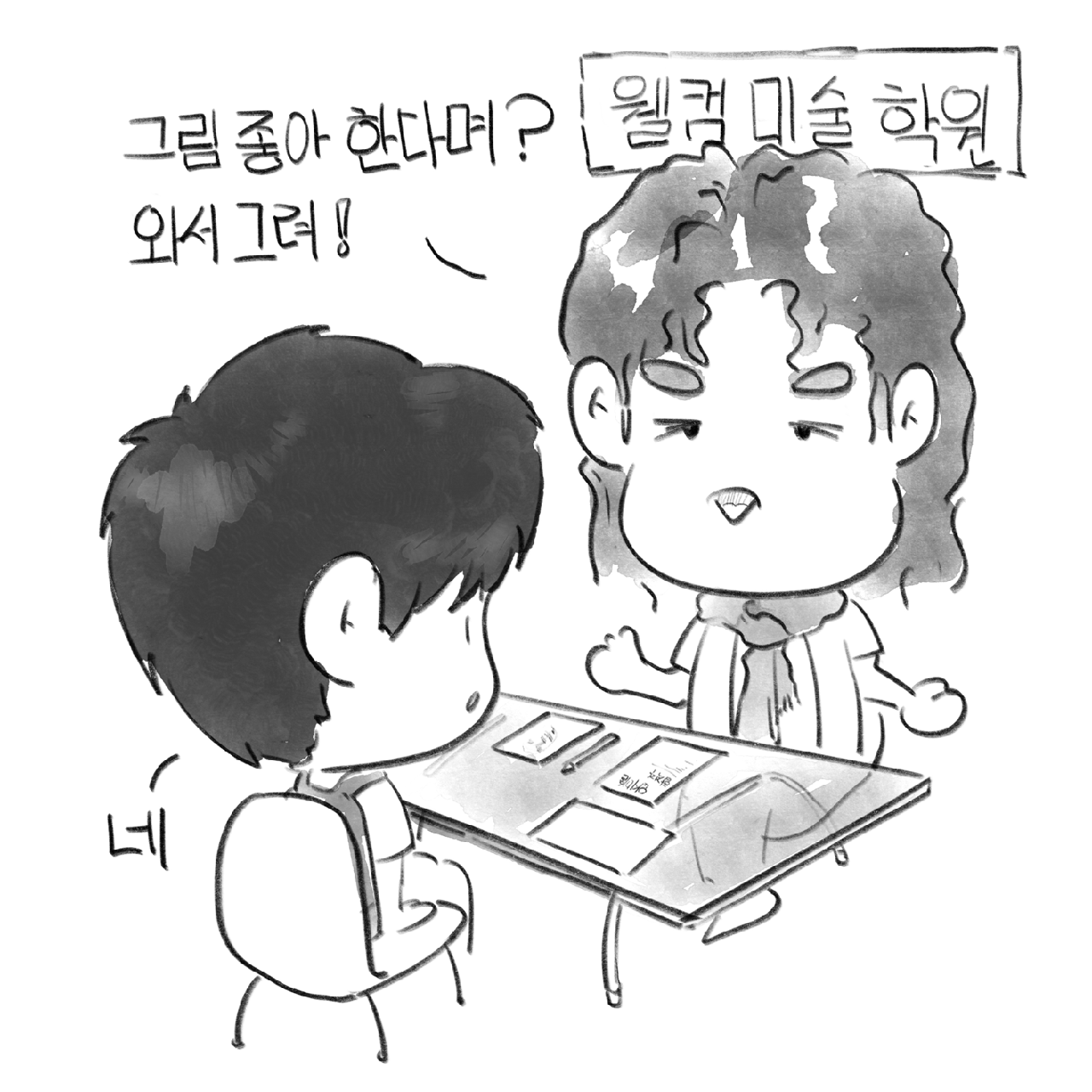“그래, 그림 좋아한다며? 좋아하는 건 해야지. 수업료는 걱정하지 말고 와서 그려.