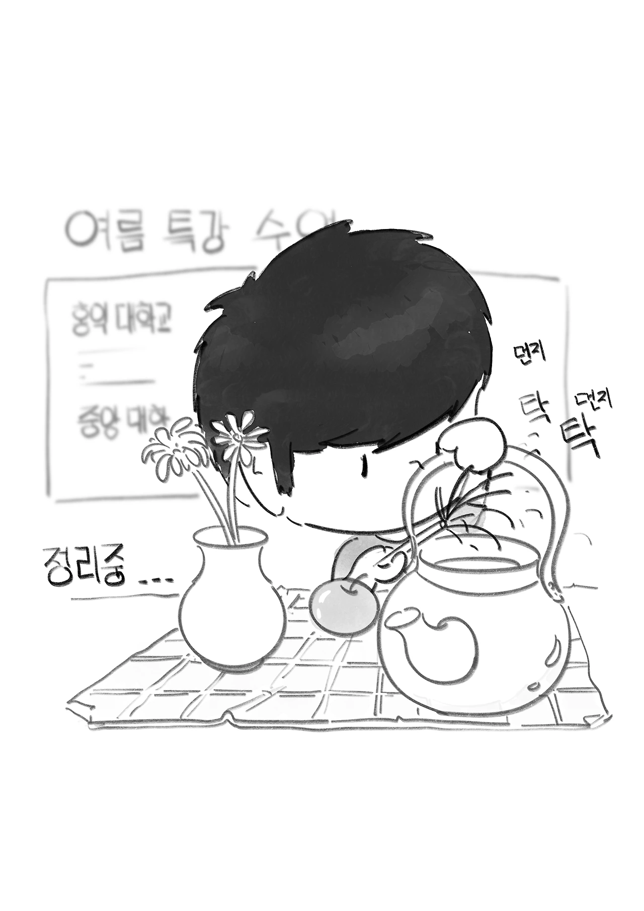 아무도 보지 않아도 정물과 자리를 정리했다.