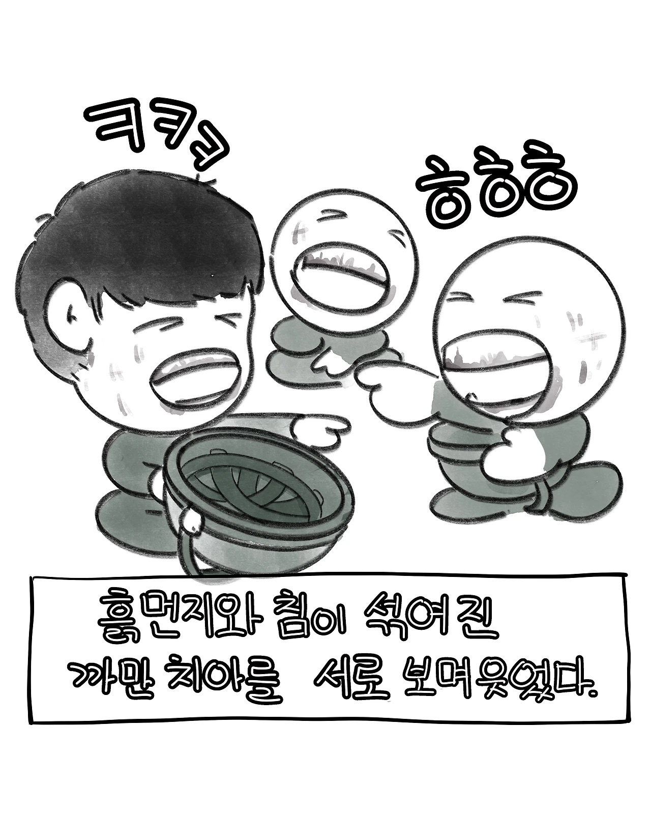 너무 힘들어 입에서 초콜릿색 침이 나와도 다 내려놓은 얼굴로 웃었다. 서로의 까만 치아를 보며, 그냥 웃었다. 배고픔과 졸림, 어지러움이 뒤섞인 밤이었다.