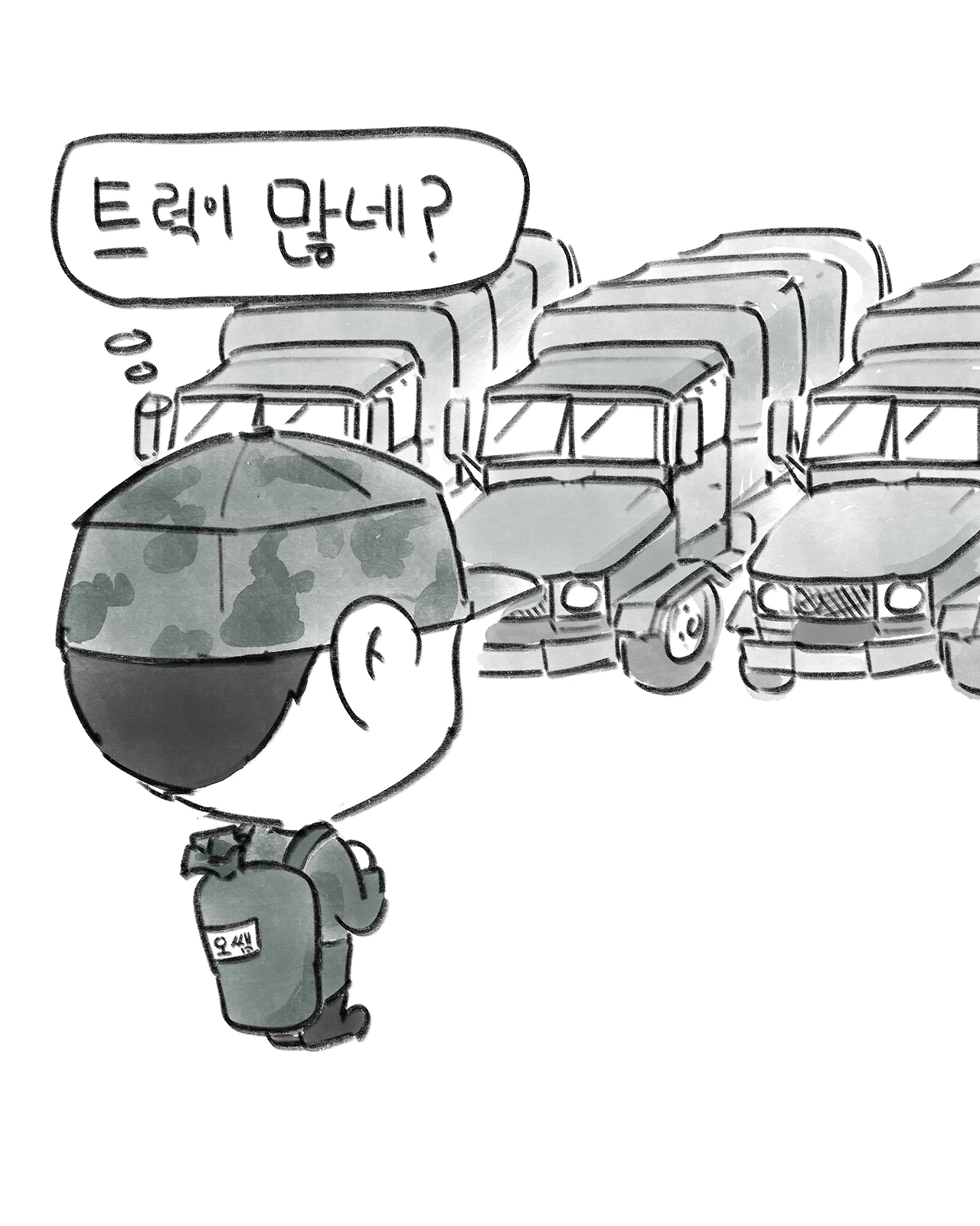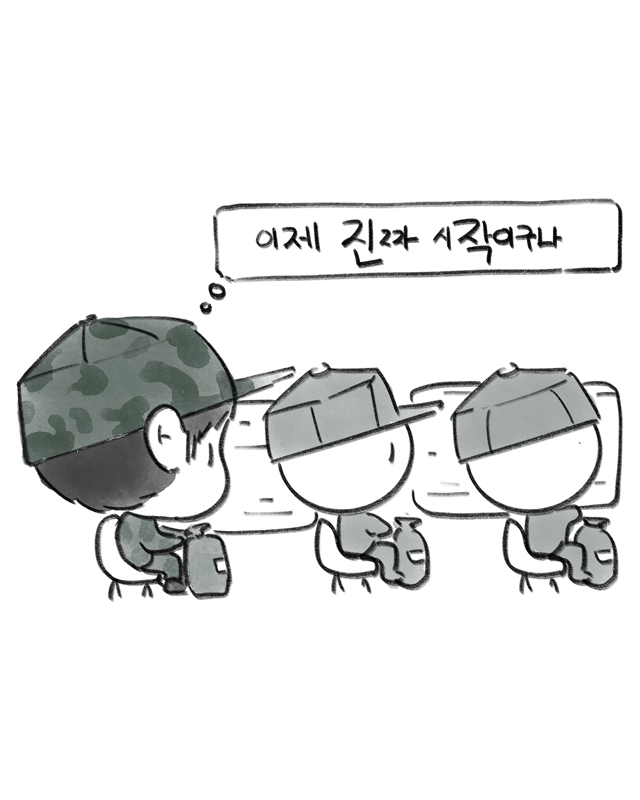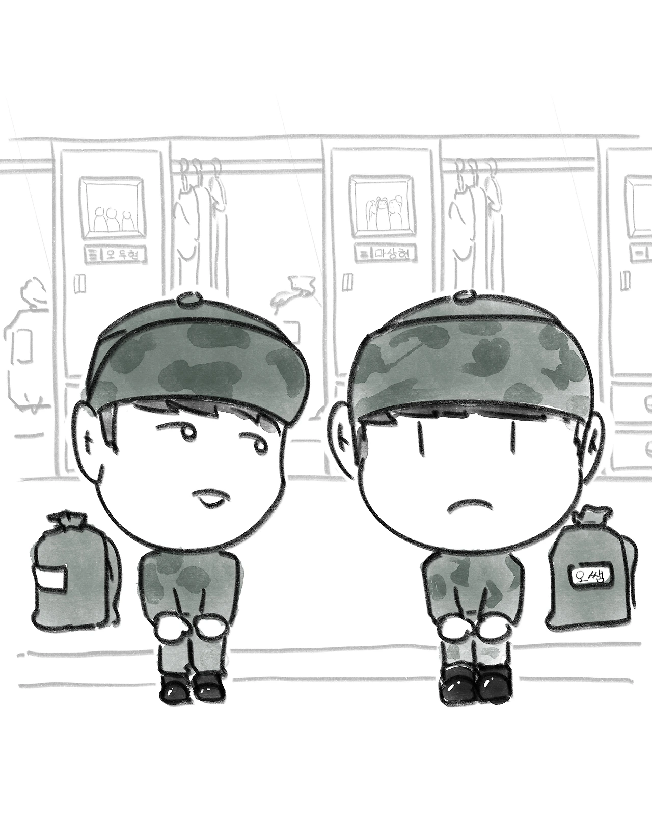 말년 병장이 이등병인 척 옆에 서서 “야, 나도 오늘 왔다”