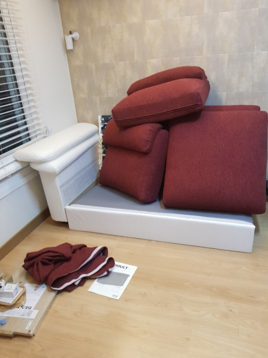 그렇게 그 모든 과정을 거쳐 집으로 가져온 소파는 직접 조립을 해야 해서 남편은 밤새도록 소파를 조립하고 또 조립해야 했고, 커버도 하나하나 빨래하고 다림질해야 했다. 쿠션을 끼우는 일도 보통이 아니었다고. 이 모든 과정을 거쳐 완성된 푹신한(그리고 예쁜!) 소파에 앉은 친구 부부는 너무나 포근하다며 좋아했다.