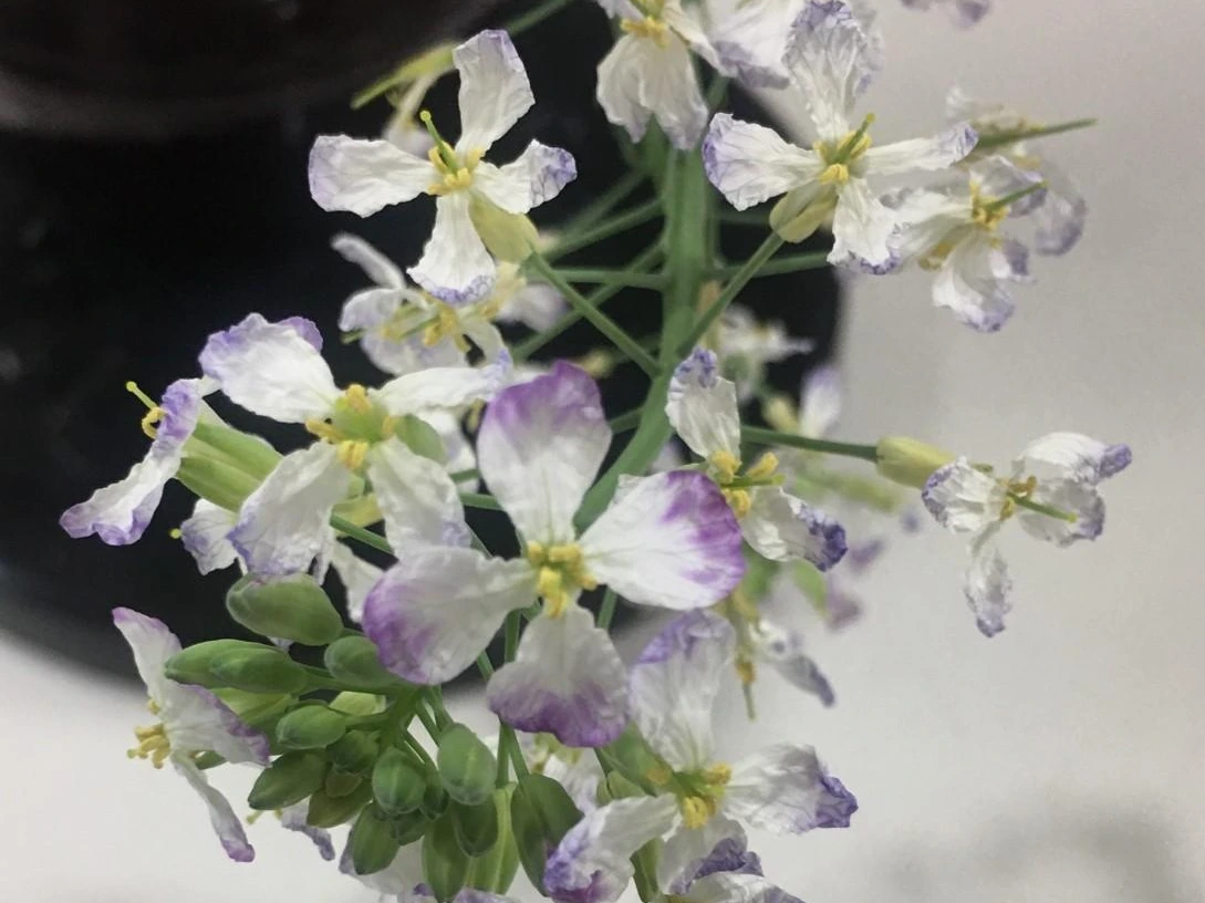 4월 첫째 주 주말 그동안 쌓아 놓은 집안일을 하려고 다용도실에 들어갔는데 돌돌 말은 신문지를 비집고 나온 무청 잎사귀에 꽃들이 활짝 피어 있었다. 노란색 수술을 중앙으로 자리한 얇은 네 잎은 손톱 끝 보라색 물감처럼 번져 보였다.