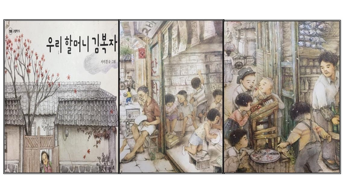 <우리 할머니 김복자>는 급한 일이 생긴 엄마가 어린 소년 단이를 외할머니네에 맡기면서 시작됩니다. 어린 단이는 할머니네가 갈이 놀 친구가 없어 심심해서 가기 싫어합니다. 멋진 축구공이 있어도 할머니는 무릎이 아파서 함께 놀 수도 없어 화가 납니다. 심술이 난 단이가 축구공을 뻥 차버리면서 할머니의 과거로가게 됩니다. 단이는 과거의 치마저고리를 입은 어린 소녀 김복자를 만나 공차기를 함께 하고 넘어진 단이에게 다가온 양갈래 누나 김복자를 만나 치료도 받고 숨박곡질도 하고 저녁에 원피스를 입은 아가씨 김복자를 만나 함께 집으로 가 돈가스를 만들기로 합니다. 앨범을 보고 있는 단이를 부르는 소리에 달려 나갔는데 할머니가 맛있는 돈가스를 만들어 주셨고 단이가 맛있게 먹으면서 마무리됩니다.