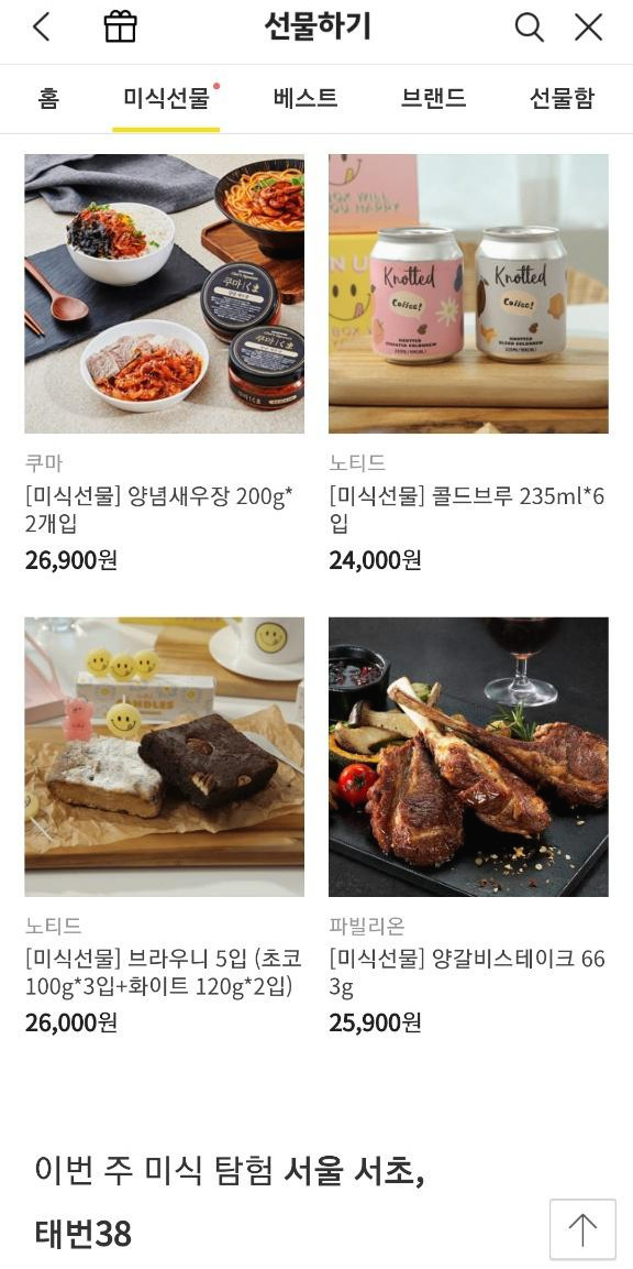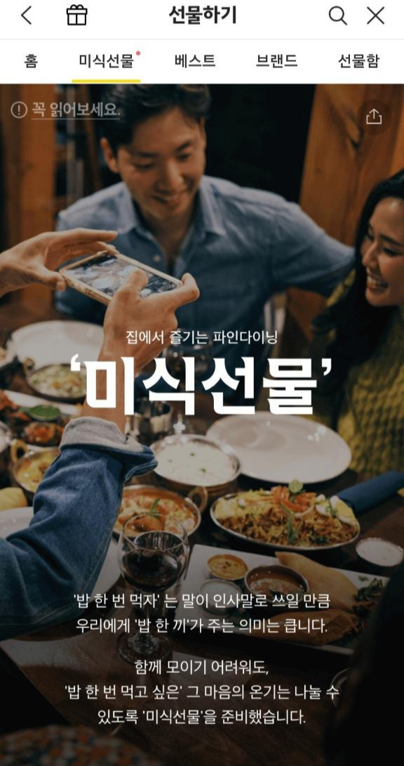 카카오톡 또한 얼마 전 선물하기에서 '미식 선물' 코너를 론칭하였지요.