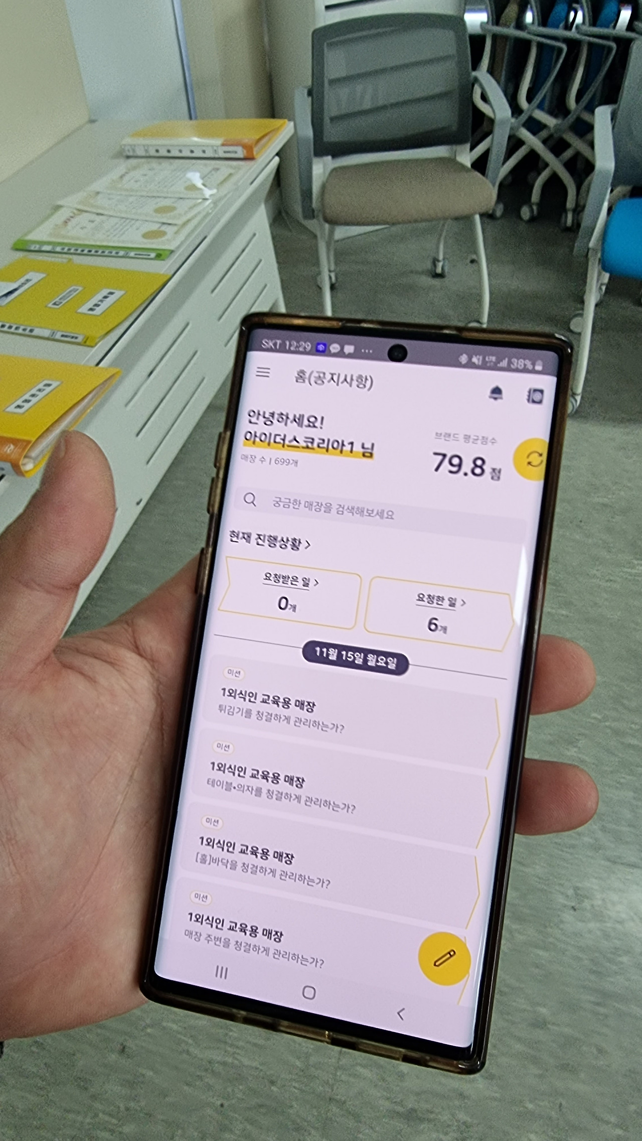 프랜차이즈 수준평가 심사 중에 찍은 사진