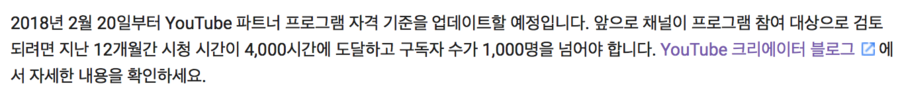 예전까지는 누적 영상 조회수 1만 회였던 기준 조건이 강화된 배경에는 바르지 못한 콘텐츠들이 많아지면서 플랫폼 생태계를 바로잡기 위한 유튜브 측의 결정과 고민이 있었다.