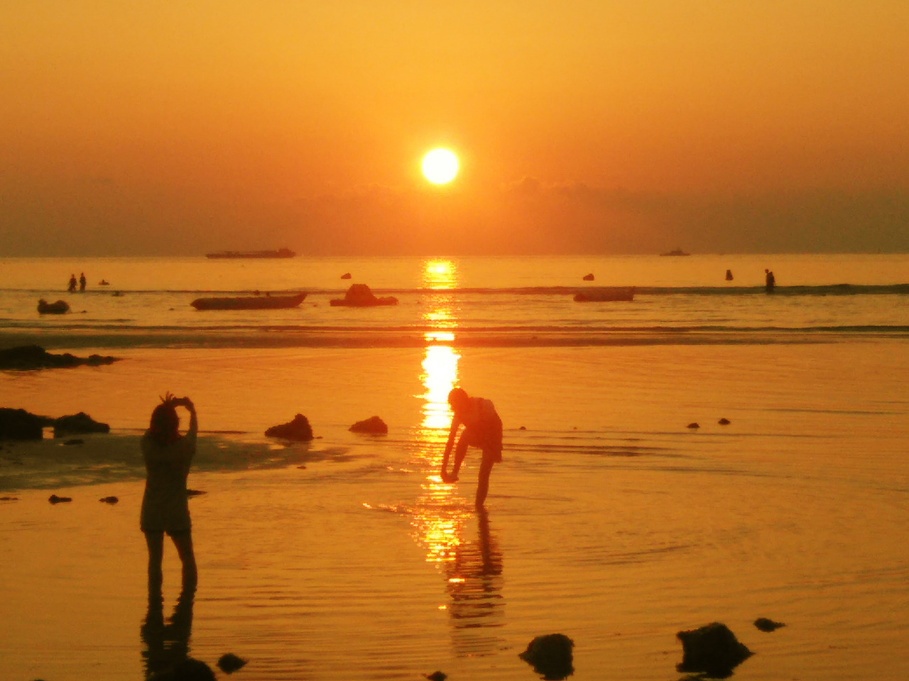 아침밥을 먹던 차림으로 툭툭, 7분 정도 차를 타고 나오면 바다다.