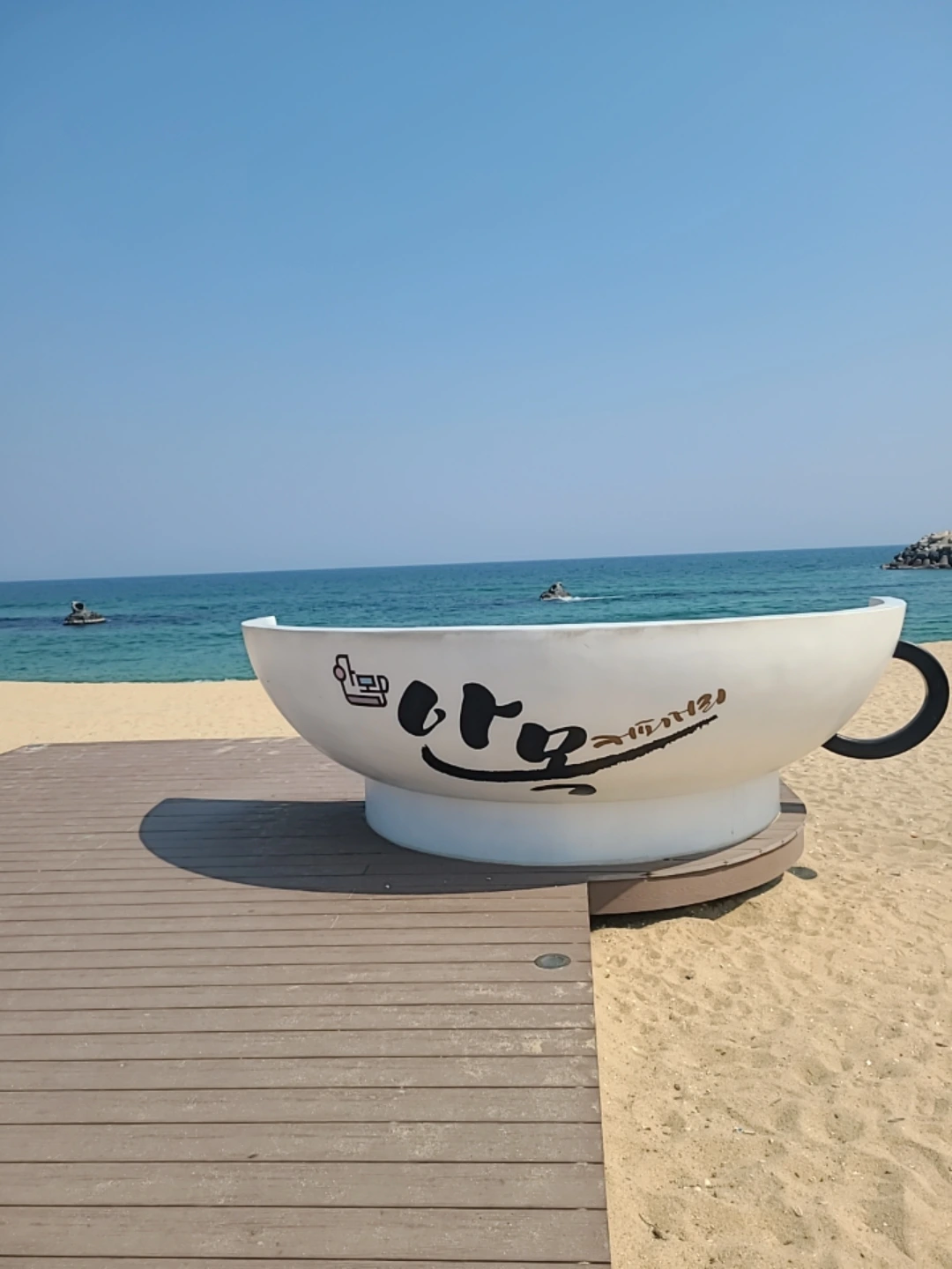각 카페마다 대표로 하는 시그니처 메뉴가 달라서 미리 찾아보고 가면 더 좋을 것 같다. 참고로, 테라로사 등 이미 너무나 유명해진 카페는 대기시간도 만만치 않으니 기다릴 각오를 하고 가야 한다. 내가 방문한 곳은 쫀쫀한 텍스쳐와 진한 맛이 일품인 크림이 첨가된 커피를 전문으로 하는 곳이었다. 물론 나는 시그니처 메뉴가 아닌 늘 마시는 아이스 카푸치노를 선택했지만, 그마저도 매우 훌륭했다. 커피가 테마인 안목해변답게, 커피콩빵도 이색적이었고 해변에 설치된 커피잔 조형물이 눈길을 끌었다.