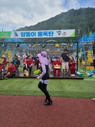 붉은색 옷을 입은 일명 '땀띠귀신'들이 물총을 들고 괴성을 지르며 무대 위로 난입하는 퍼포먼스는 축제의 백미였다. 모든 참가자가 중앙 무대 근처로 모이면, 여기저기서 물대포가 터지며 음악소리와 함께 한바탕 워터쇼가 펼쳐진다. 관객과 밀당을 하는 사회자의 능숙한 진행을 보는 것도 색다른 볼거리다. 참가자들은 온몸이 흠뻑 물에 젖건 말건 음악과 분위기 속에 취해 현장 그 자체를 즐기는 듯 보였다.