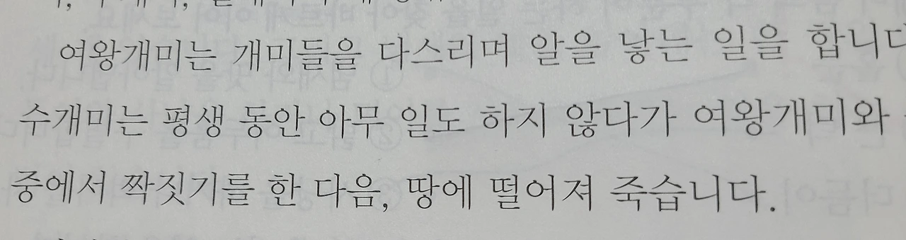 문제 지문 속 수개미에 대한 내용을 참고로 올려본다.