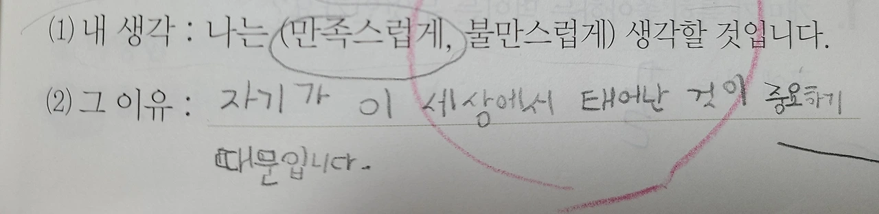 여러분이 만약 수개미라면 수개미로 태어난 것에 대해 어떻게 생각할까요? 여러분의 생각을 선택하고 그 이유를 써 보세요