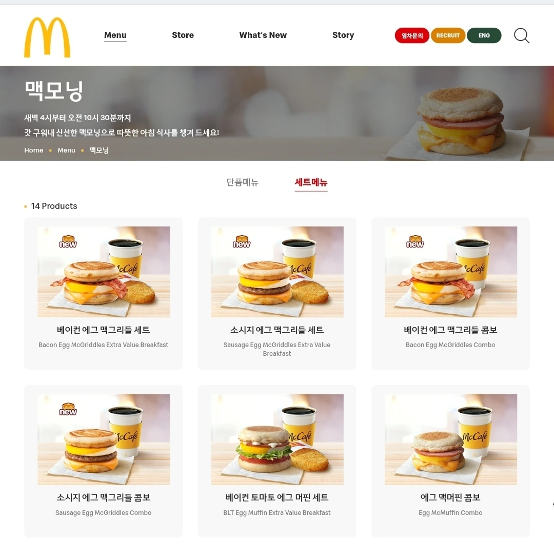 맥모닝 세트메뉴 (출처:맥도날드 홈페이지)