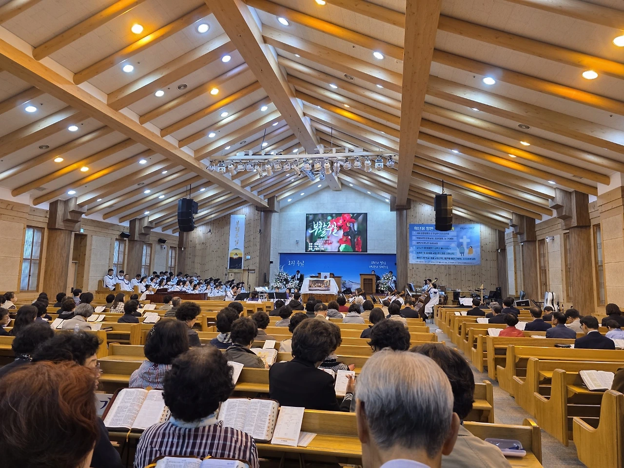 안내위원의 친절한 안내에 따라 우리 가족은 본당 한편에 착석했다. 어린이예배 시간은 이미 지나버린 관계로 오랜만에 아이들까지 함께한 대예배였다.