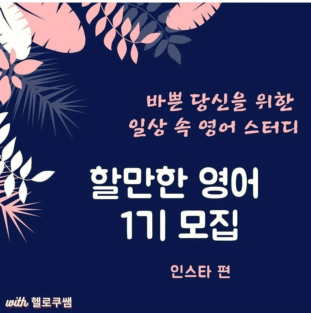 그 왕성한 호기심으로 sns 활동을 활발히 하며 이것저것 수업을 듣기 시작했다. 물론 온라인으로 말이다. (나의 온라인 강의 정복기는 '아이 말고 엄마의 사교육비가 늘어버렸다'를 참고하시길) 그러면서 sns 하는 감각과 재미를 알게 되었고 특기이자 업인 '영어'라는 콘텐츠를 쌓아가기 시작했다. 첫술 밥에 배부를 수는 없으니 콘텐츠 축적이 필요했고 약 1년 전, 드디어 온라인 영어 스터디를 시작하게 되었다. 기획과 구성, 운영, 홍보, 관리까지 1인 다역을 하니 부담이 되기도 했지만 첫 도전에 가슴이 뛰었다. 개인 블로그와 인스타그램으로 스터디 홍보를 했는데 사람들의 관심을 받지 못할까 봐 조마조마하기도 했다. 뭐 이건 아직도 여전히 그렇지만.