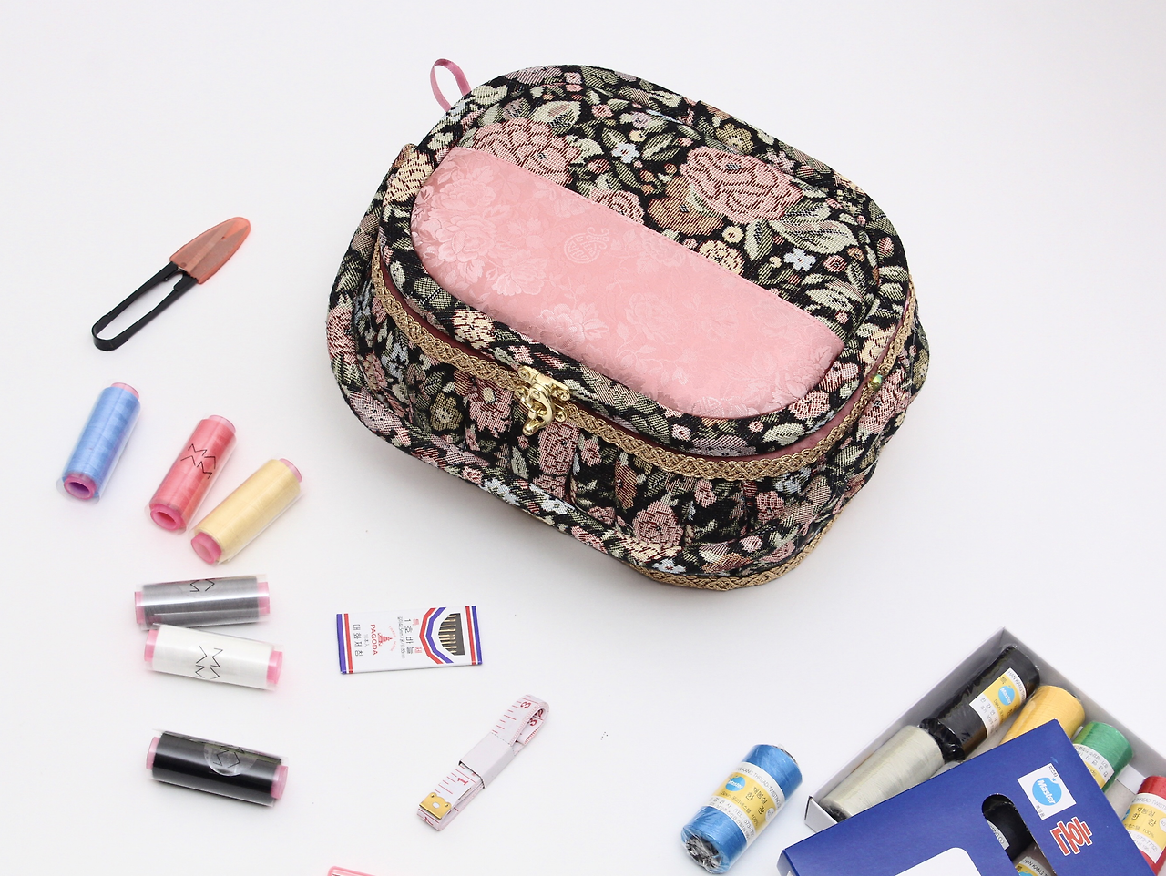 반짇고리로 원단을 소진하는 것엔 한계가 있어, 파우치도 만들었다. 자카드 원단은 프린트된 원단이 아니라 색실로 짜인 원단이라 두껍고 질긴 편이다. 파우치를 만들고 원 모어 백이라는 파우치, 가방 편집숍에 입점 신청을 했었는데, 거절됐다. 파우치가 이것뿐이었고 원 모어 백은 당시에 나날이 커가는 곳이었기 때문에 방향이 맞지 않았던 걸까 생각했다.