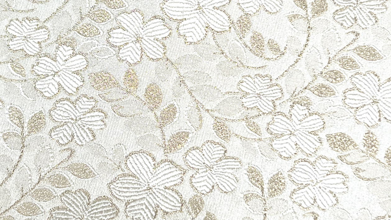 크림색 바탕실에 백사와 금사가 짜인 자카드 원단이다. 꽃 패턴 원단인데 어렸을 때부터 모두가 그걸 “코스모스”라고 부르길래 당연히 코스모스가 그려진 원단이라고 생각했다.