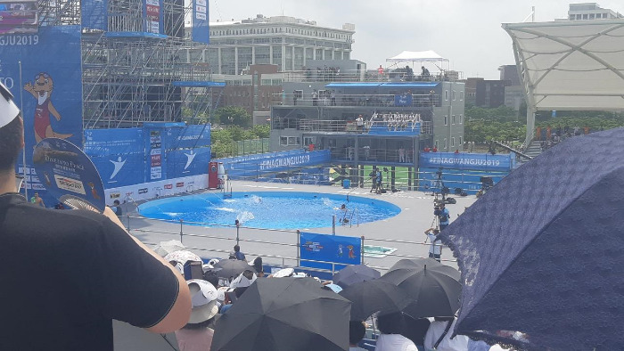 그러고보니 아티스틱수영이 있었던 염주체육관은 롯데마트 주차장을 관람객 주차장으로 안내했는데, 주차장이 경기장과 너무 멀고 안내가 제대로 되지 않아 역시 혼란스러웠다는 이야기를 들었다. 하이다이빙 경기가 있었던 조선대학교도 마찬가지. 무료로 댈 수 있는 관람객 주차장으로 근처 초등학교를 배정했는데, 역시 관람객 입구와 너무 멀어서 차라리 유료더라도 학교 안에 대고 관람한 사람들이 있었다.