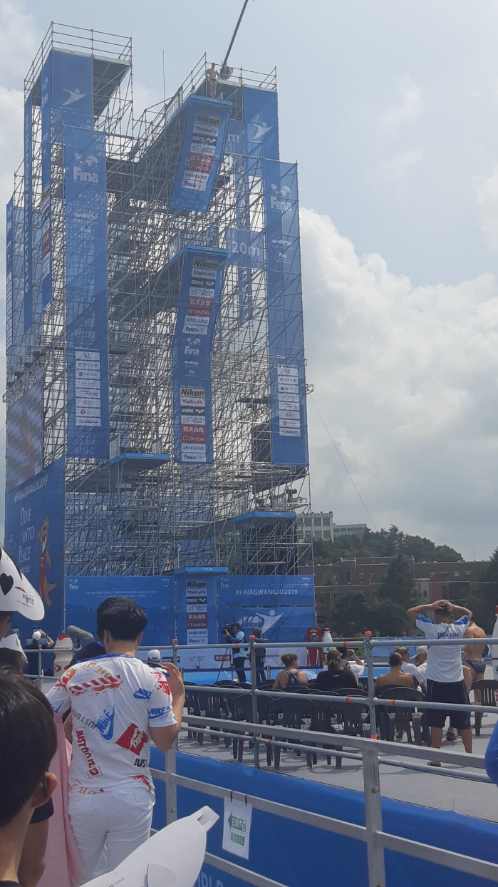 하이다이빙을 직관 한 건 지난 22일이었다. 그 날은 지붕이 없는 곳에서는 아무것도 할 수 없을 정도로 더웠다. 자연스럽게 내 발걸음은 지붕이 있는 관람석을 향했다. 반대편에 있는 일반 관람석은 땡볕아래 그대로 노출되어 있었기 때문이다. 이러면 안되지만, 미디어권을 가지고 있으니 혹시나 그늘 아래서 경기를 볼 수 있지 않을까-기대가 있었다.