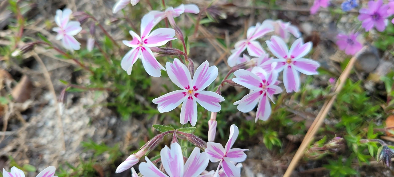 꽃잎 중심에 보랏빛 선.