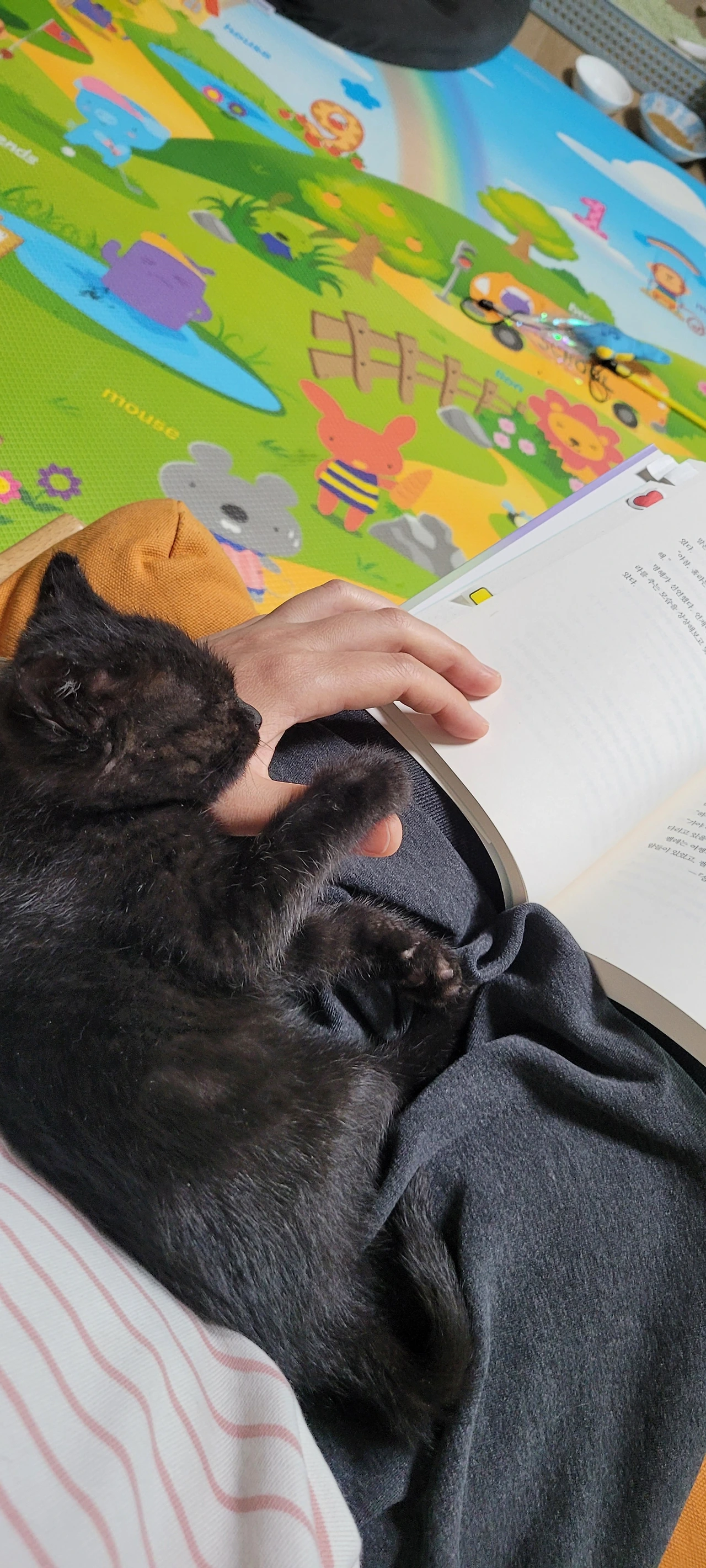 아, 건강해서 정말 감사합니다, 절로 감사의 기도가 나왔다. 용이를 데려온 첫날, 아이들의 고모로부터 들은 이야기 때문에 계속 걱정이 됐었다. 아기 고양이는 잘 죽는다고 했다. 이미 고양이를 두 마리나 키웠고, 지금도 3마리를 키우고 있어 경험자의 말을 무시할 수 없었다. 아기 때부터 키우는 건 힘들다고도. 그러니 마음을 너무 많이 주지 말라고 했다. 용이는 엄마에게 버림받은 고양이였다. 약한 새끼는 버리기도 한다고 들었다. 의사 선생님은 건강에 이상은 없는 것 같다고 했지만, 정밀 검사를 한 건 아니니 자꾸 그 말이 의심이 됐다.