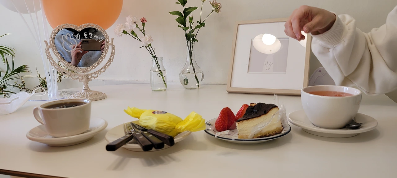 아빠가 도착하자마자 아빠를 모시고 맛있는 디저트가 있는 카페에 갔다. 오시느라 힘드셨을 테니 달달한 걸로 피로를 좀 풀어 드리고 싶었다. 치즈케이크와 레몬 빵과 아메리카노를 시켰다. 카페의 분위기도, 디저트도 아빠가 마음에 들어하니 더 기분이 좋았다. 아빠와는 저녁까지 먹고 헤어졌다. 동생집과 우리 집 중에 동생집을 택하신 것. 이유는 동생집이 1층이라 왔다 갔다 하기 편하다, 는 것이었지만 아직까지는 우리 집보단 동생네가 더 편하다는 걸 나도 안다. 동생은 사람을 편안하게 하는 재주가 있으니까.
