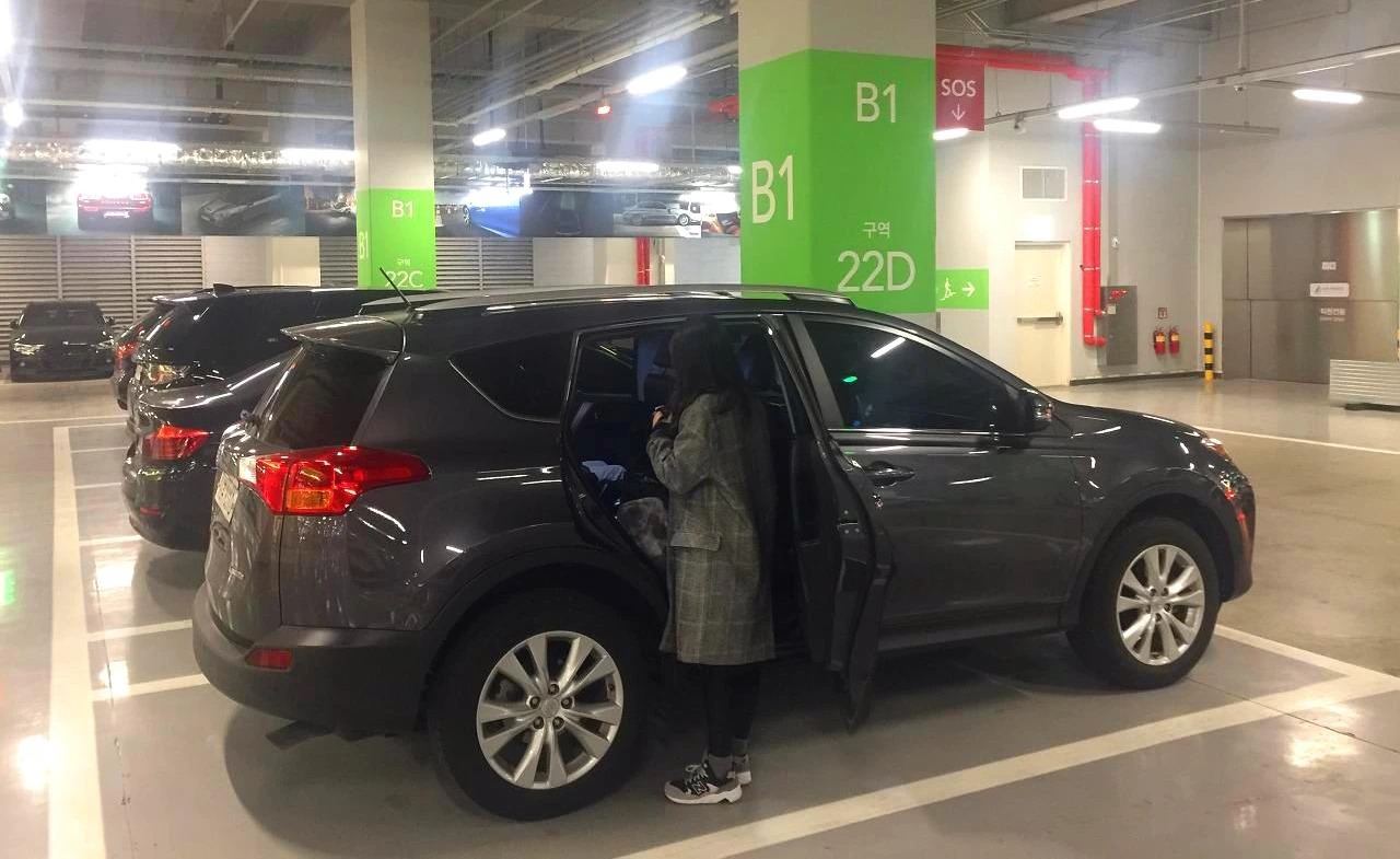 하지만 내 친구는 안에서 죽어라 손을 흔들었다. "아닙니다. 아니에요 괜찮아요. 우리는 더 지하로 내려갈 거예요. 경차 자리는 좁아서 못 대요." 결국 지하 5층까지 내려가서 여유로운 자리에 주차를 했다.