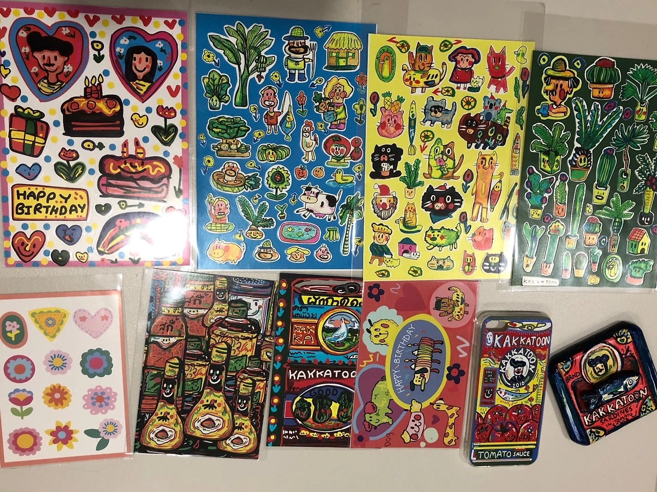 원님만에서 12월 첫째 주부터 한 달 동안 펼쳐지는 아트페어. 그중 가장 마음에 들었던 kakkatoon이라는 브랜드다. 셀러랑 쿵짝쿵짝 이야기하다가 이것저것 사고 연신 '굿'을 외치자, 스티커랑 엽서 등을 선물로 주었다. 너무 감각적인 그림!