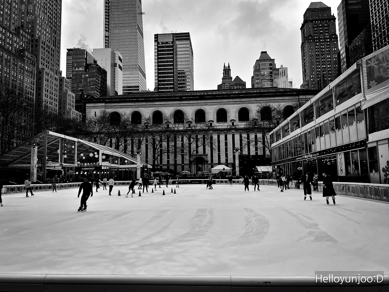 라테를 마실 생각에 들떠서인지 추워서 잘 보이지 않던 창 밖의 풍경이 보이기 시작했다. 브라이언트 파크의 스케이트장이었다. 그래, 이게 바로 뉴욕이지! 따뜻한 라테 한 잔과 함께 뉴욕의 겨울을 즐길 상상을 하니 마음이 푸근해졌다.
