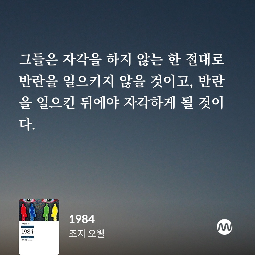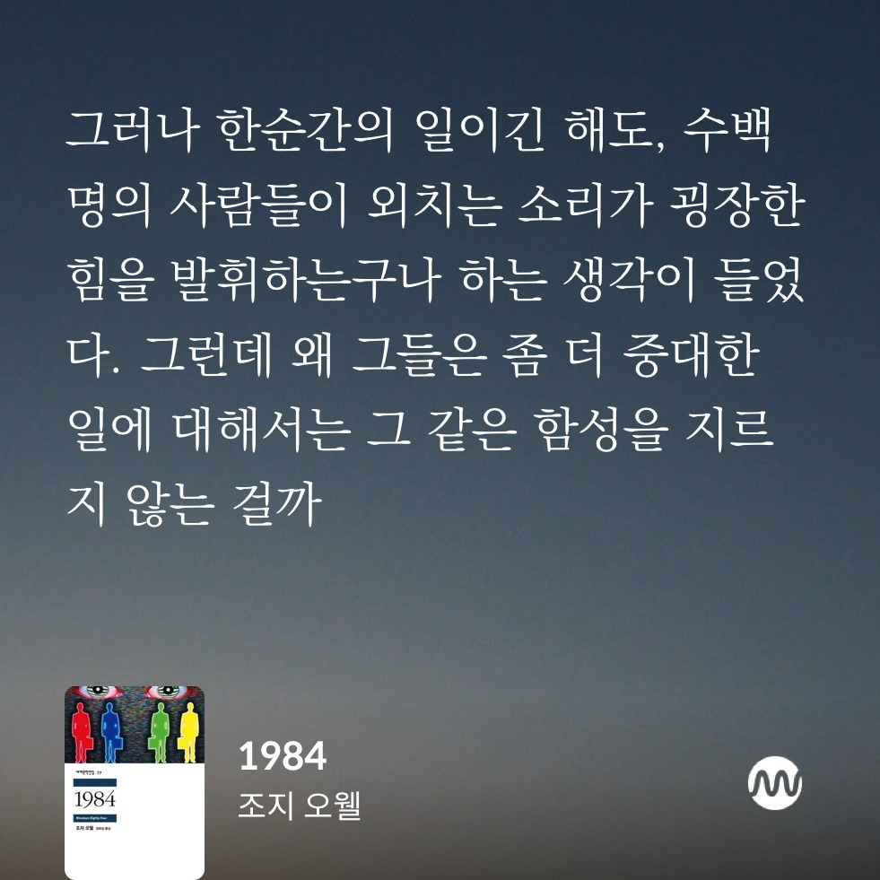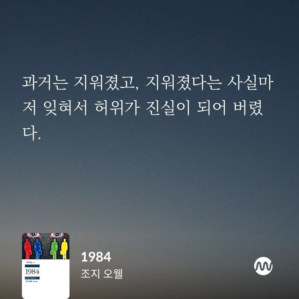 p.s: 요즘 읽고 있는 조지오웰의 <1984>의 내용과 함께 여러 생각이 아직 정리되지 않은 채 머릿속에 얽혀 있다. 인상 깊었던 몇 구절을 공유한다.