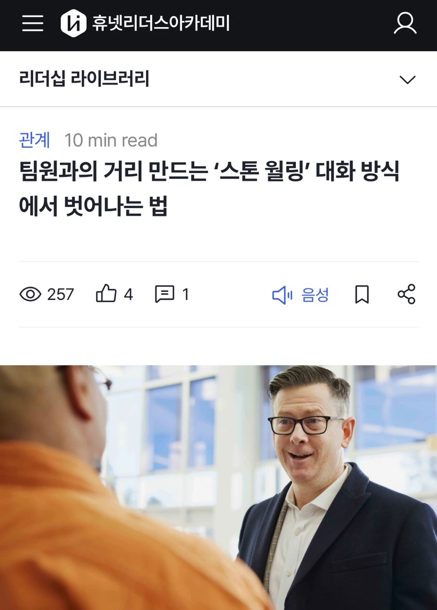 도대체 무엇이 문제인지 모르겠는데 팀원과 자꾸 멀어지는 것 같은 느낌이 드셨다면, 내가 혹시 ‘스톤 월링’ 대화 방식을 고수하고 있는 것은 아닌지 돌아볼