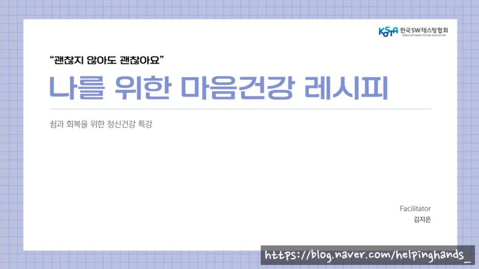 이런 생각과 함께 오늘 강연을 진행하면서는 아래와 같은 마음 건강 실천법을 소개해 드리고 워크시트를 함께 제공해 드렸습니다.