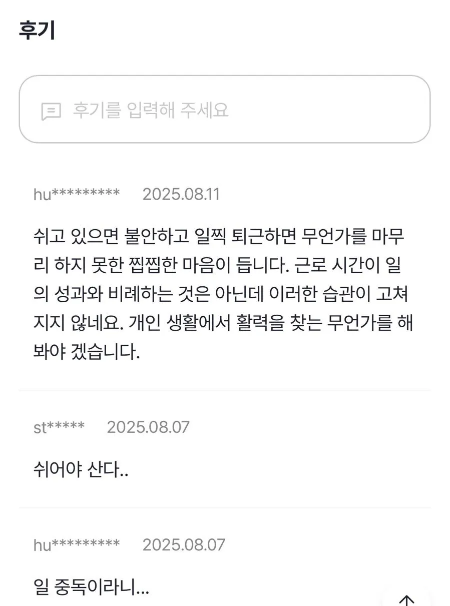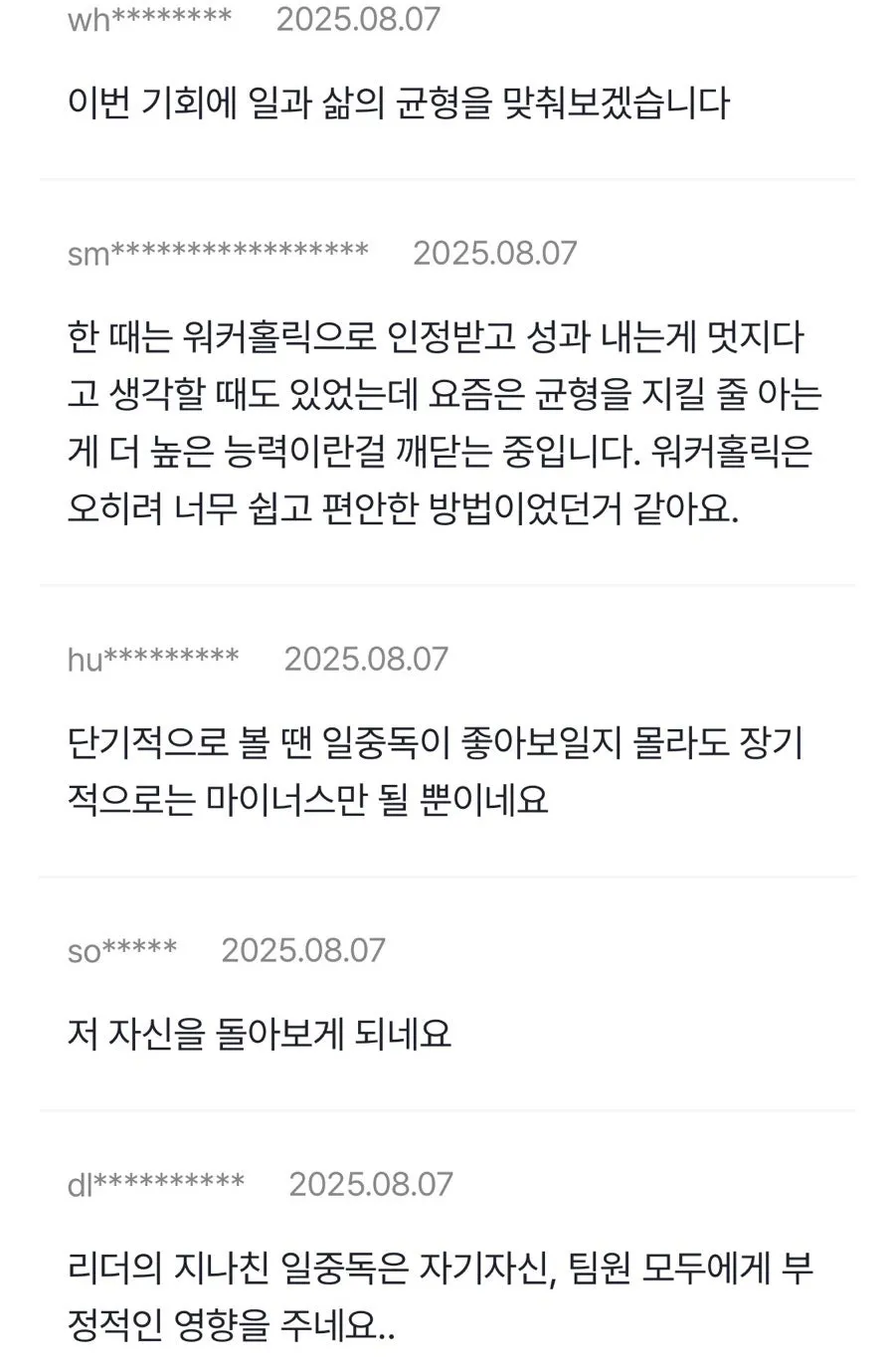 후기를 통해 독자이신 리더분들도 “내가 워커홀릭이 아닌지 돌아보게 되었고, 이번 기회로 일과 삶의 균형을 맞추기 위해 노력해야겠다”는 말씀들을 나눠주셨네요.
