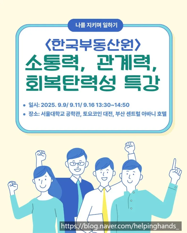 오늘은 특별한 소식을 전해드리려 합니다. 지난 며칠 동안 한국부동산원 주관, 한국능률협회 의뢰로 국토교통부, 대전시 구청 및 시청 공무원, 부산지역 공무원분들을 대상으로 특별한 워크숍을 진행했습니다.