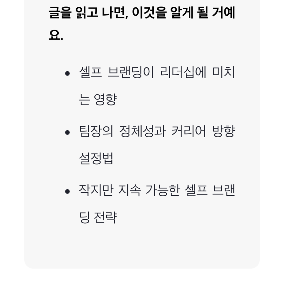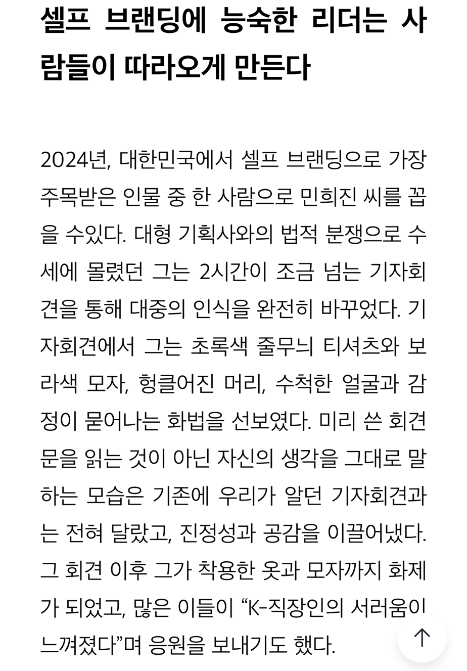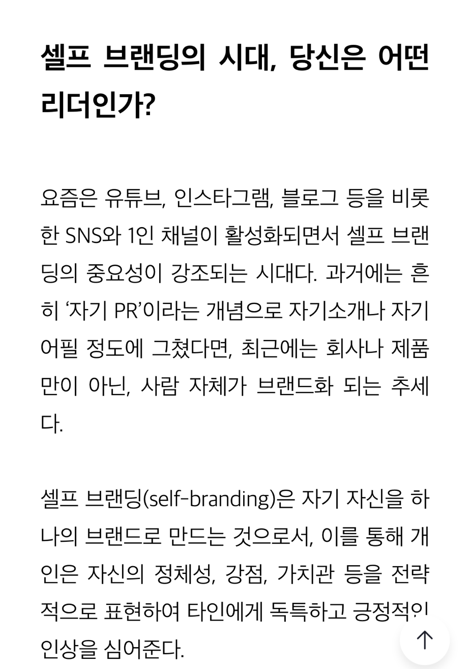이런 질문에 답하고자 휴넷 리더십 저니에 <리더의 셀프 브랜딩과 셀프 리더십>을 주제로 칼럼을 기고했습니다.