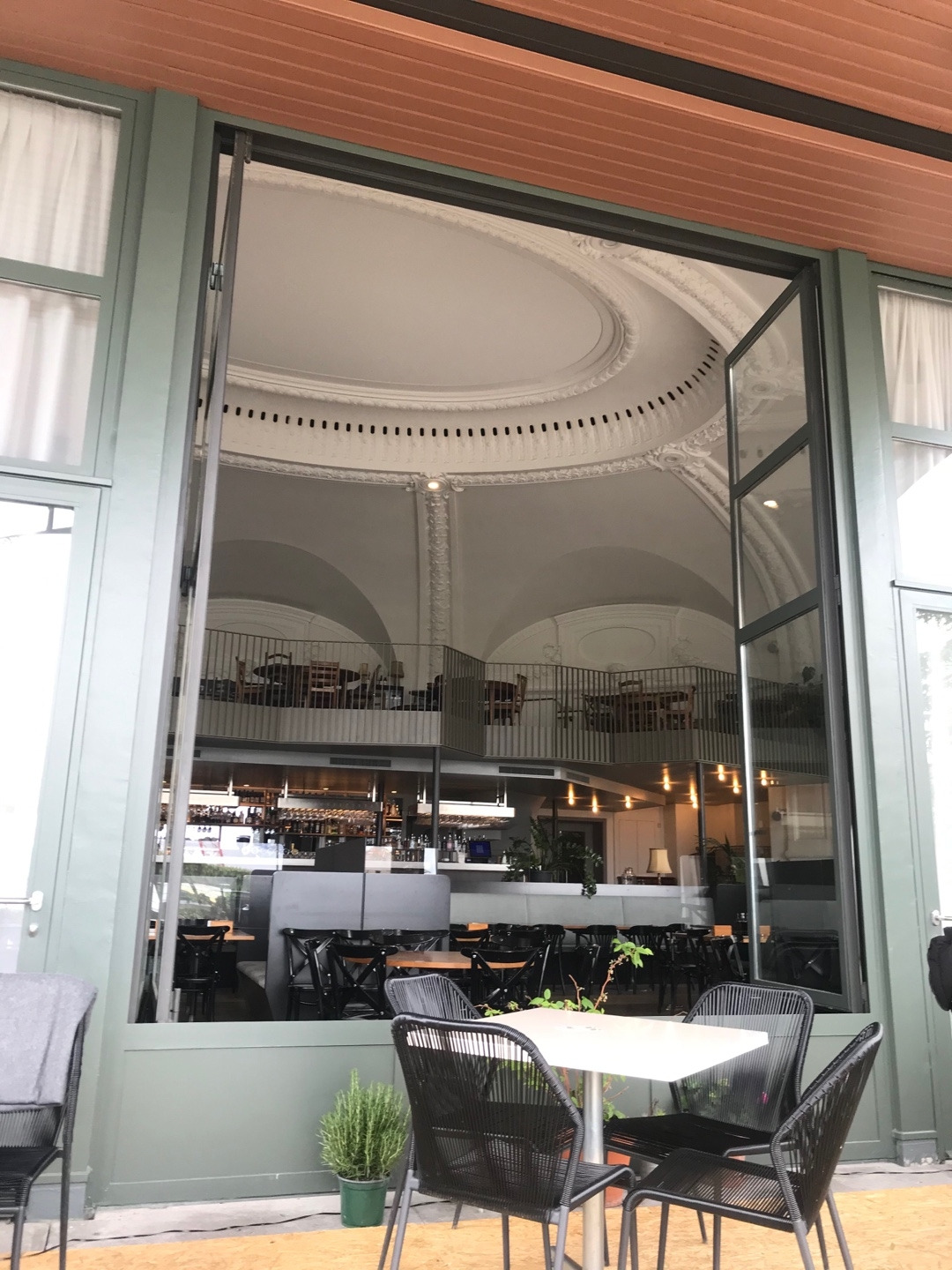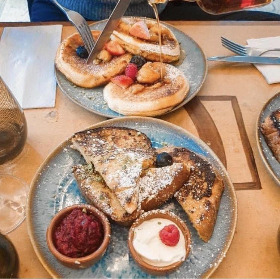 로잔 시내를 다닐 때마다 항상 2층 야외 테라스에 사람들이 빈자리 없이 앉아있는 걸 보고 언젠가 한번 가봐야지 했던 곳인데, 미국인 친구 추천으로 방문해 보았다. 레스토랑과 바, 카페를 함께 하는 곳인데, 낮에는 브런치 메뉴와 팬케이크, 카페 메뉴로 영업하고 저녁부터 늦은 새벽까지는 주류 위주의 바(bar)로 운영하고 있다. 야외 테라스에 앉으면 로잔 중심가가 내려다보이는데, 식사 메뉴를 주문해야 앉을 수 있다고 한다.