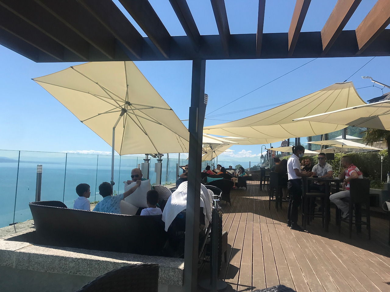여기에서 식사나 커피 메뉴를 주문해본 적은 없기 때문에 맛을 평가하기는 어렵겠지만, 아름다운 레만 호수와 푸른 나무, 잔디를 내려다보며 야외 테이블에서 잠시 여유를 즐기다 보면 스위스 현지인이 된 것 같은 기분을 느껴볼 수 있다. 방문했을 당시에는 코로나로 실내 자리에는 앉을 수 없었는데, 실내 분위기 역시 근사하니 식사 메뉴를 주문해서 즐기는 것도 좋겠다.