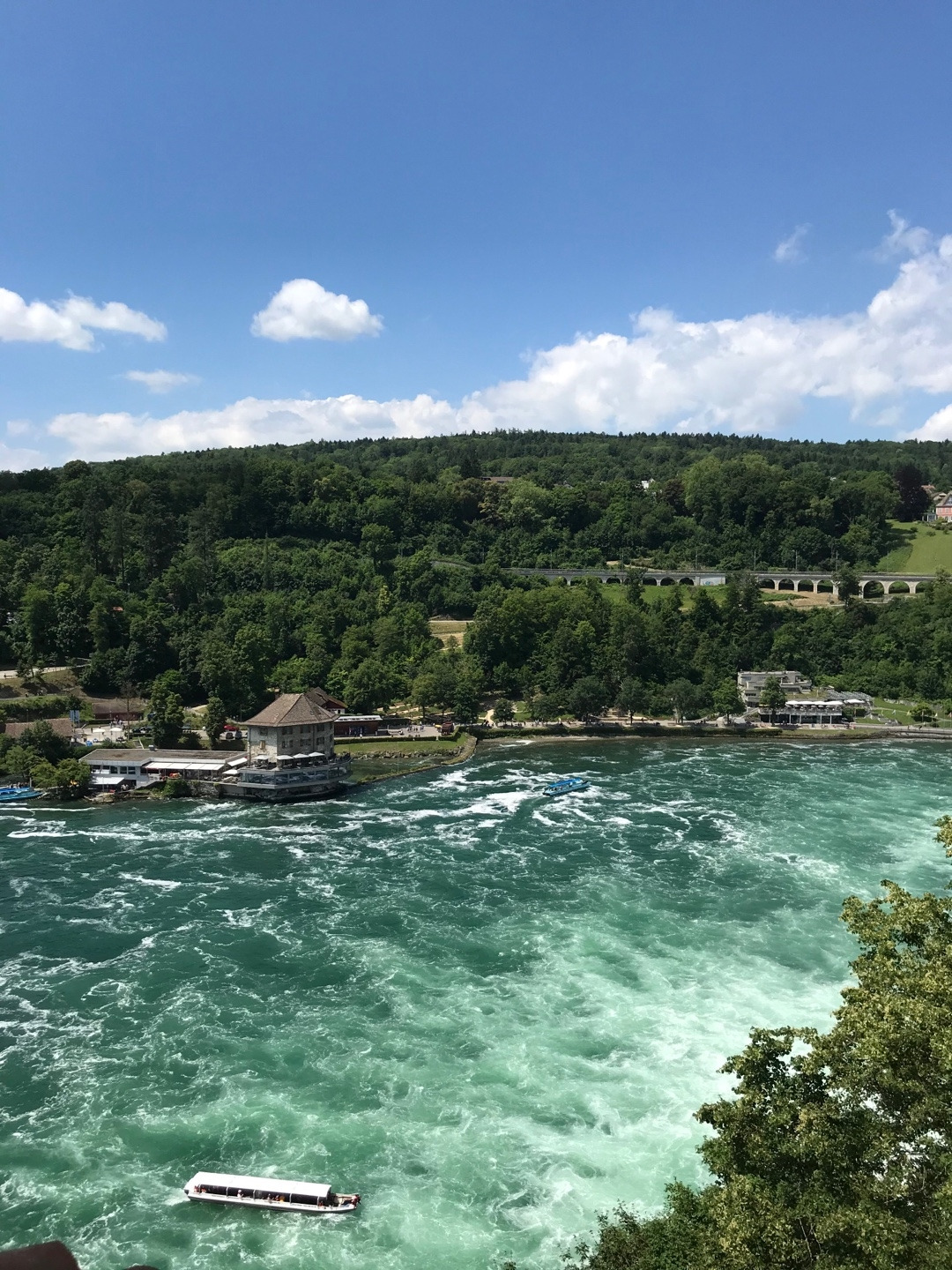 기차에서 내려 버스로 한 번 갈아타고 20분 정도를 달려 라인 폭포 근처에서 내렸다. 마을을 따라 조금 걷다 보니 폭포 입구에 다다랐다. 여행 프로그램에서 스위스 여행기가 나올 때마다 빠지지 않고 나오는 곳 중 하나가 바로 라인 폭포다. 나이아가라나 빅토리아 폭포에 비하면 규모가 아주 크지는 않지만, 유럽 최대의 폭포라고 한다.