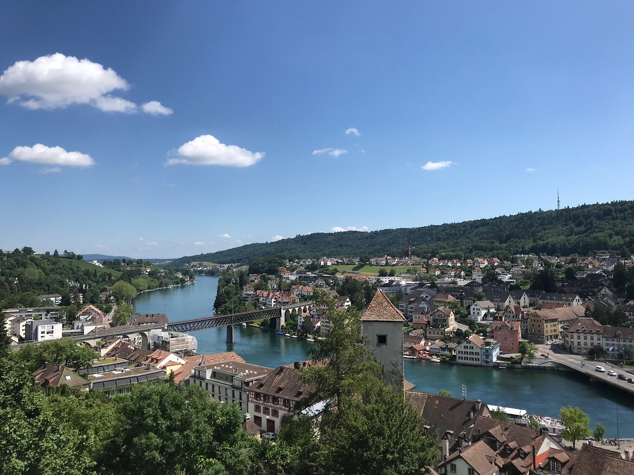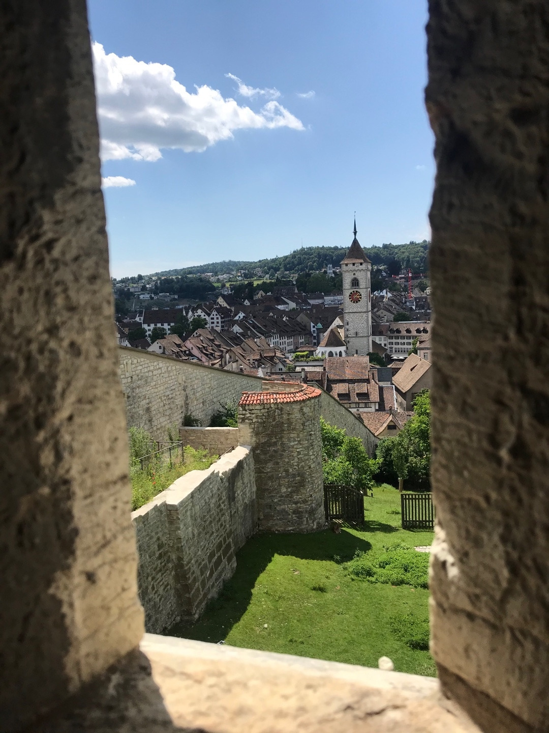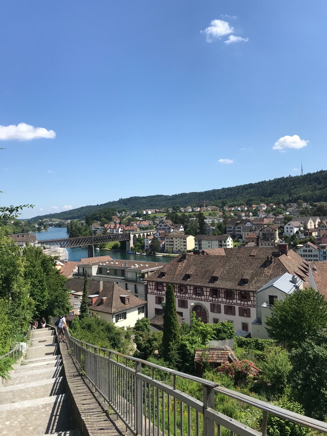 이윽고 요새에 도착해 빙글빙글 돌아가는 계단을 거쳐 성 꼭대기에 도착했다. 밖으로 나오자 시원한 바람과 함께 마을을 관통하는 강과 샤프하우젠 시내가 한눈에 내려다 보였다. 힘들게 올라온 만큼 이 광경이 더욱 아름답고 값져 보였다. 아직 거친 숨을 내쉬며, 마을을 쭉 눈으로 살폈다.