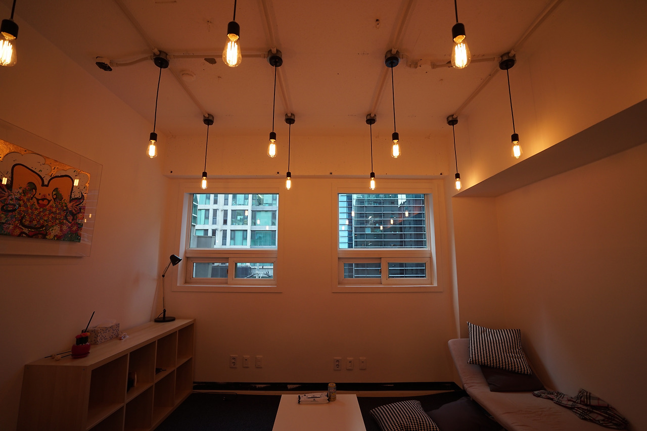 선릉역 인근(도보 7분 거리, 포스코 사거리)에 위치해 있는 헬프미의 사무실은 멋진 인테리어와 아늑한 휴식 공간, 풍성한 간식을 제공하고 있습니다.
