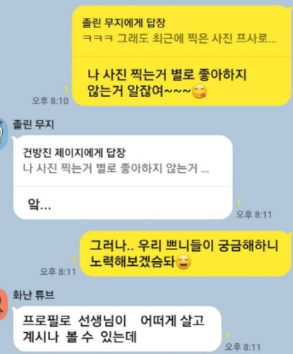 예상하지 못했던 질문에 조금 당황했다. 난 프사를 신경도 쓰지 않거니와, 사진 찍는 것도 좋아하지 않고 혹시 바꾼다면 자연물 게시하는 정도였다.