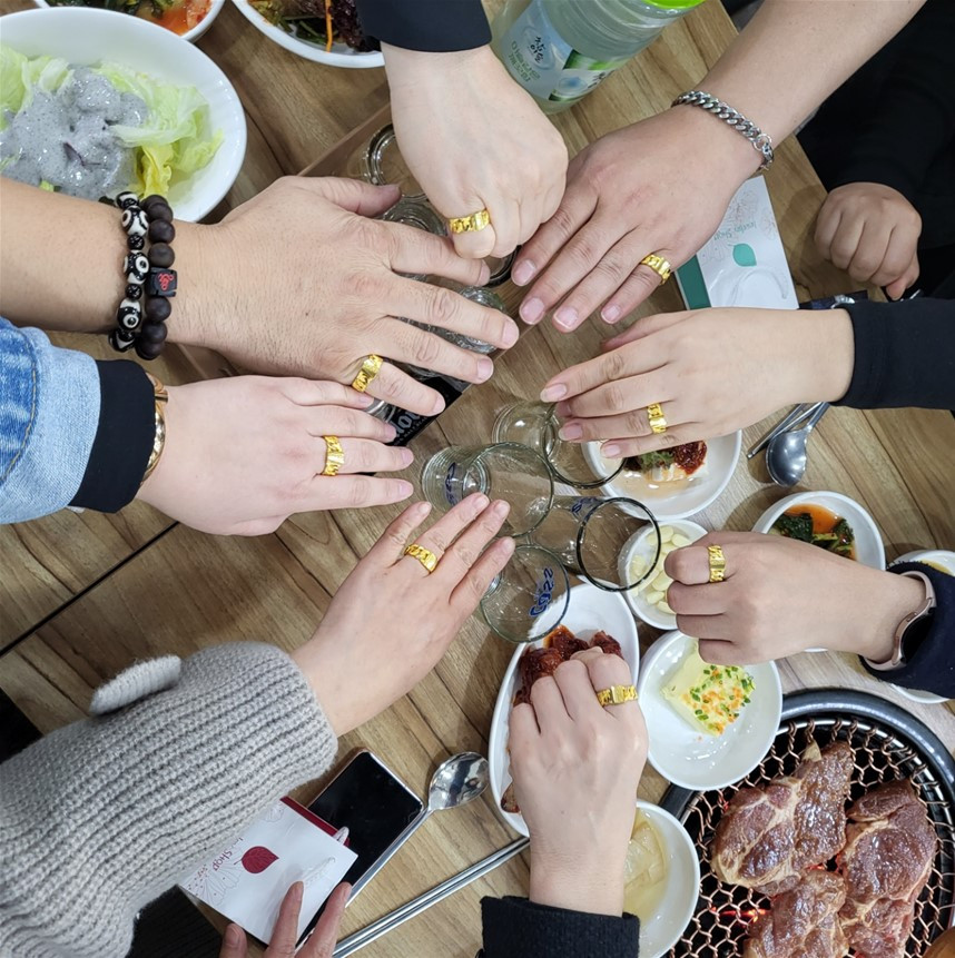 1986년 13살, 9월 교실에서 만난 친구들. 2014년 41살, 4월 다시 만났다. 2023년 50살, 10주년! 의미 있는 시간을 기념하기 위해 우정 반지 하나씩 나눴다.