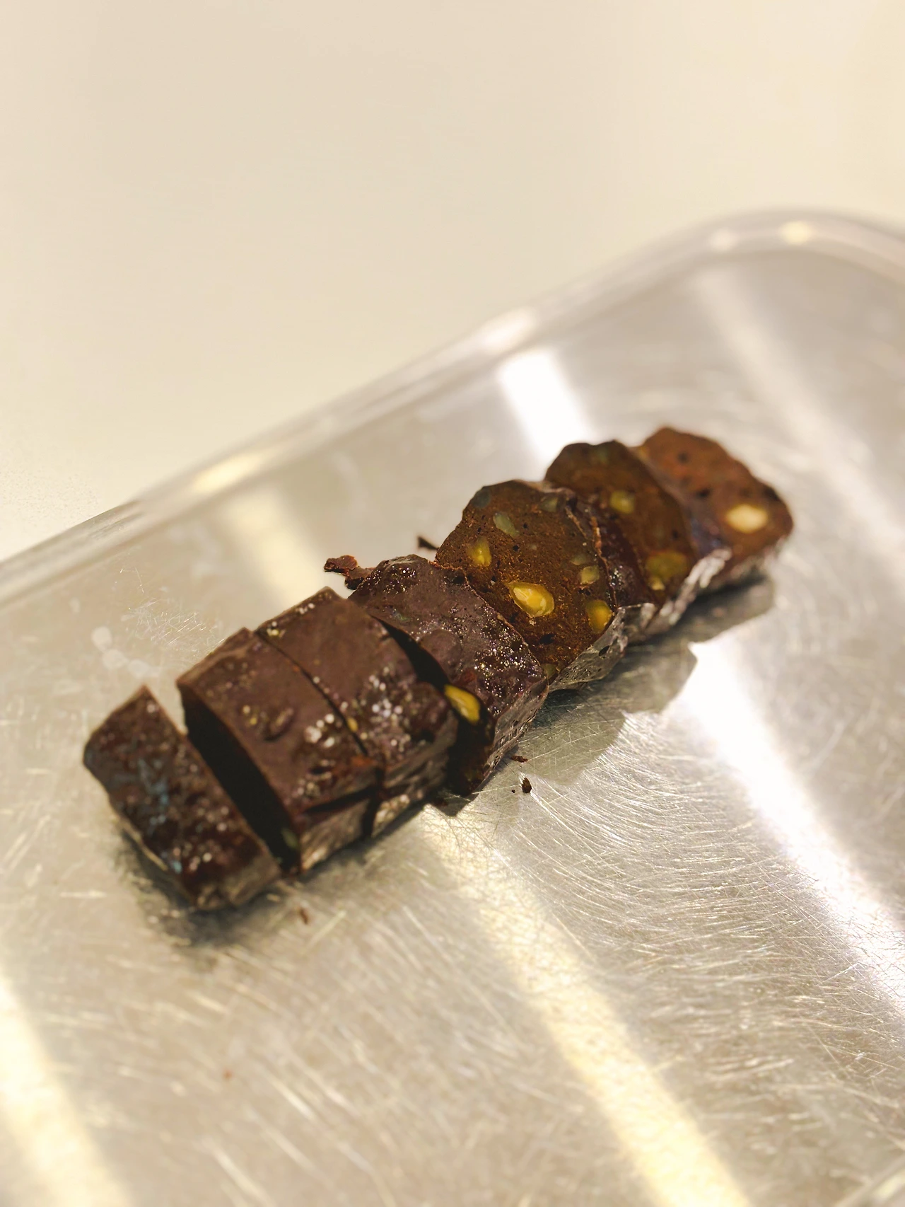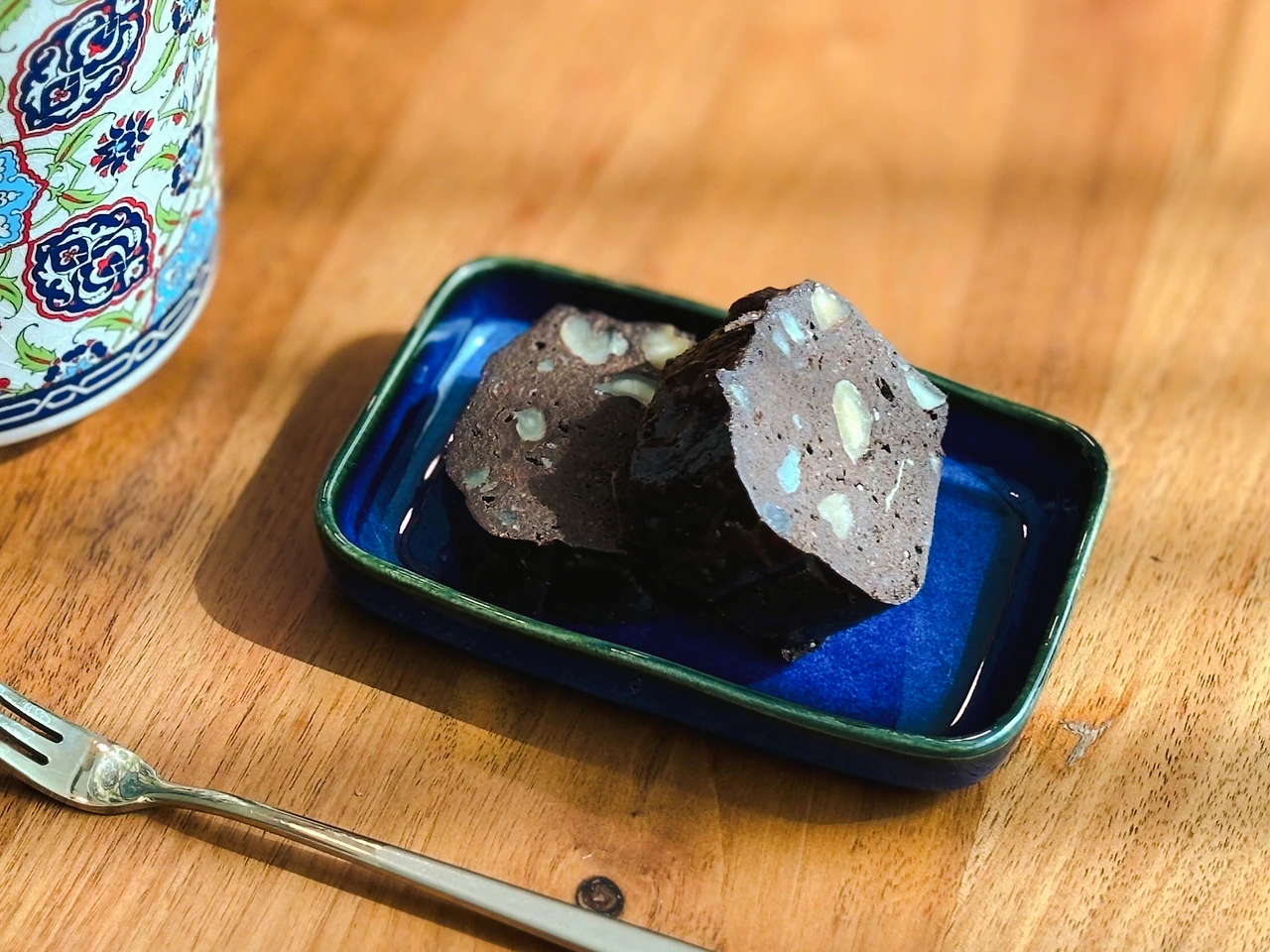 그래서 아몬드가루와 베이킹파우더를 살짝 추가해 보았다. 재료를 추가한 만큼 알룰로스의 양도 조금 더 넣었다. 견과류를 부수기 귀찮아서 아몬드슬라이스를 잔뜩 넣었더니 비주얼도 좀 그렇고 식감도 투머치 느낌이 있지만 맛은 합격! 꾸덕에서는 조금 더 멀어졌지만 허전했던 느낌은 채워졌다. 다음에는 베이킹파우더를 빼고 만들어볼까 싶다. 그럼 조금 더 꾸덕한 느낌이 나지 않을까?