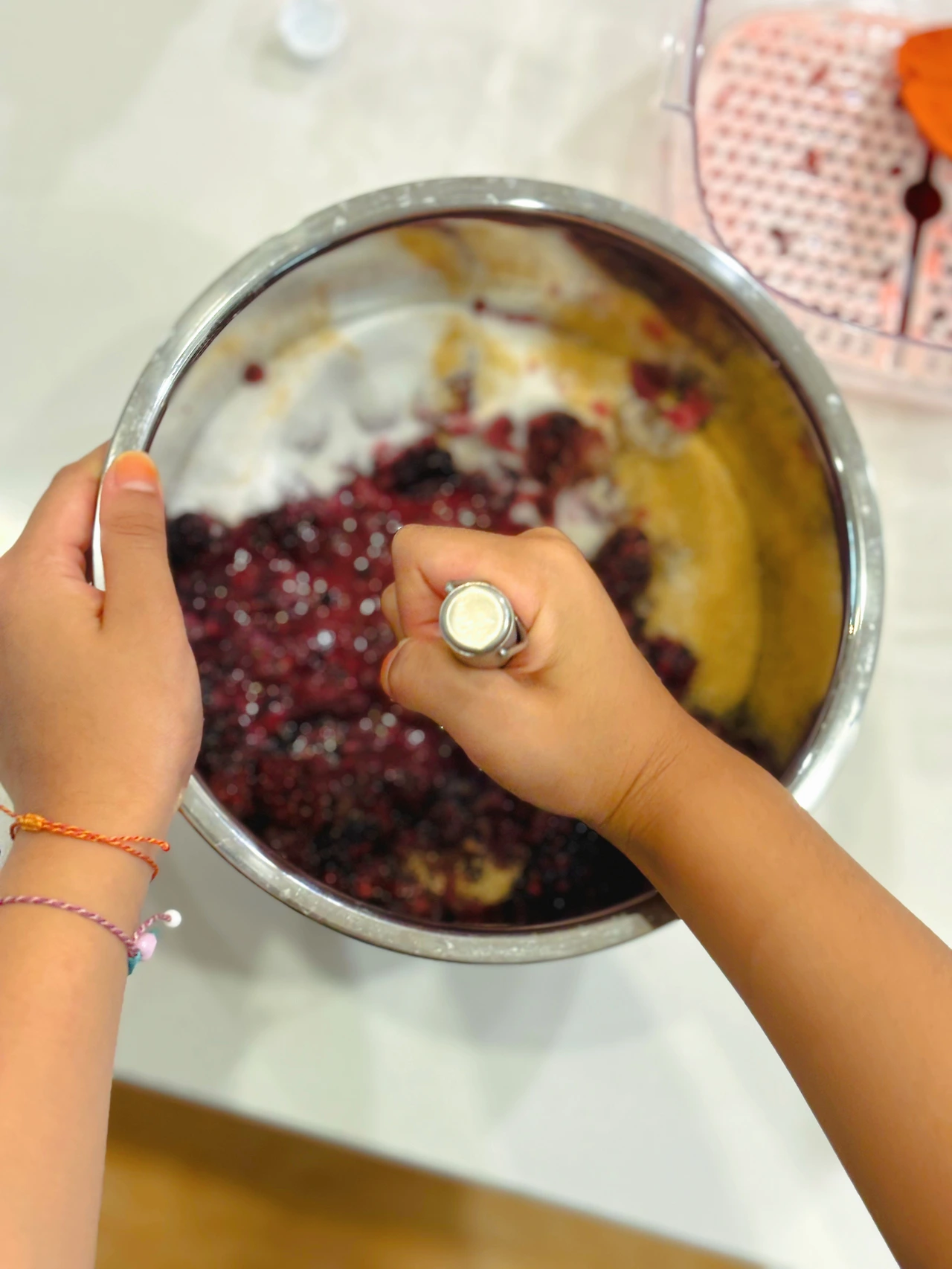 - 복분자와 설탕류를 2:1 정도로 넣고 으깨며 섞어준다 (취향에 따라 설탕류를 더 추가해 준다)