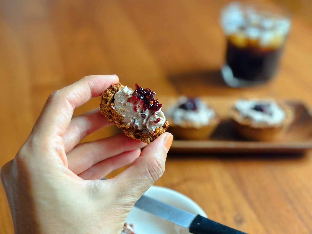 보통의 타르트지를 생각하며 자꾸 퍼스러지는데도 최대한 얇게 반죽을 펼치려고 했는데, 오트밀타르트는 조금 두툼하게 만들어야 하는 것 같다. 6개 중 2개가 결국 굽고 난 후 빼다가 부서져버렸다.