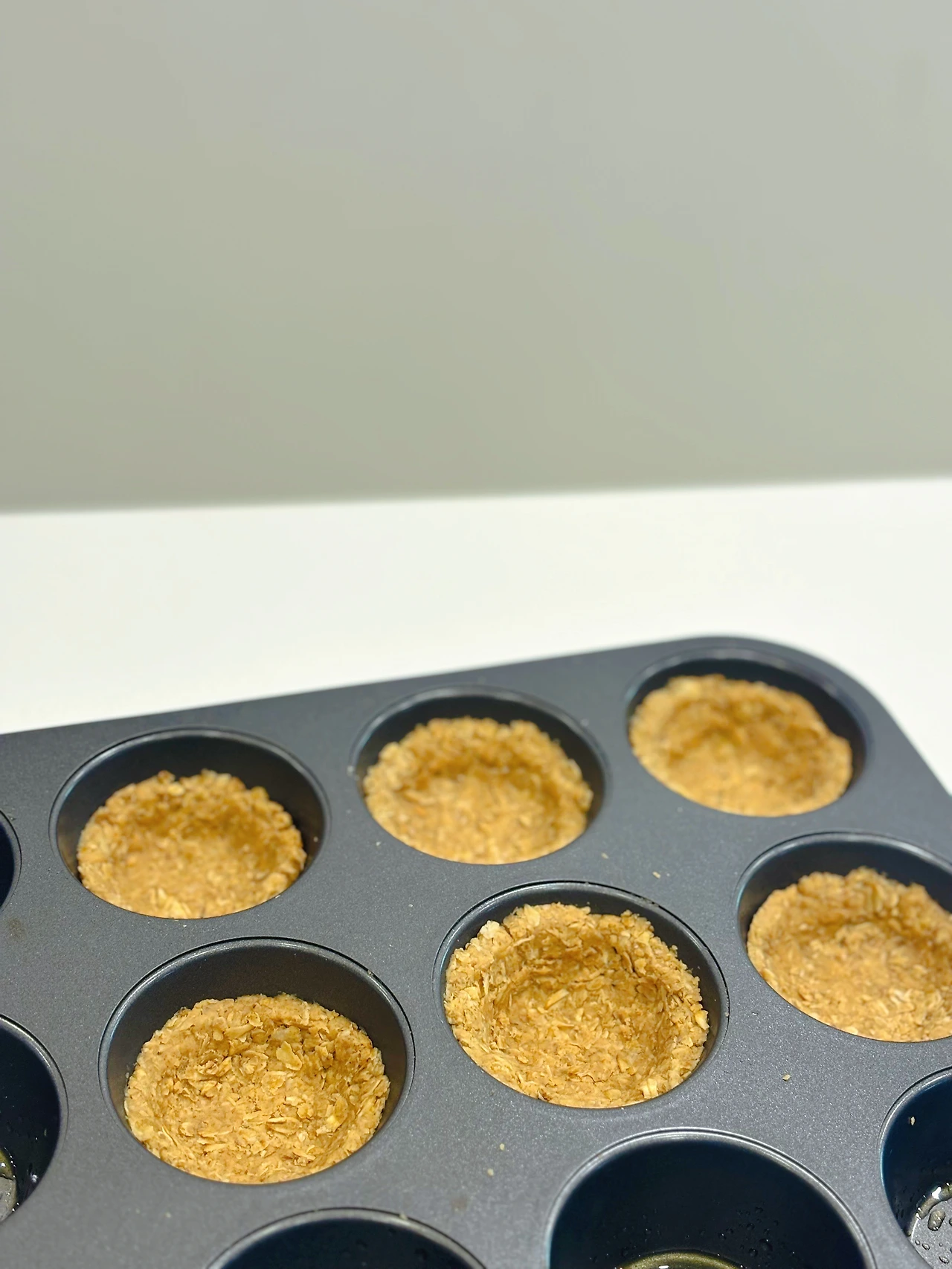 - 머핀틀에 올리브유를 뿌리고 오트밀 반죽을 넣어 눌러준다