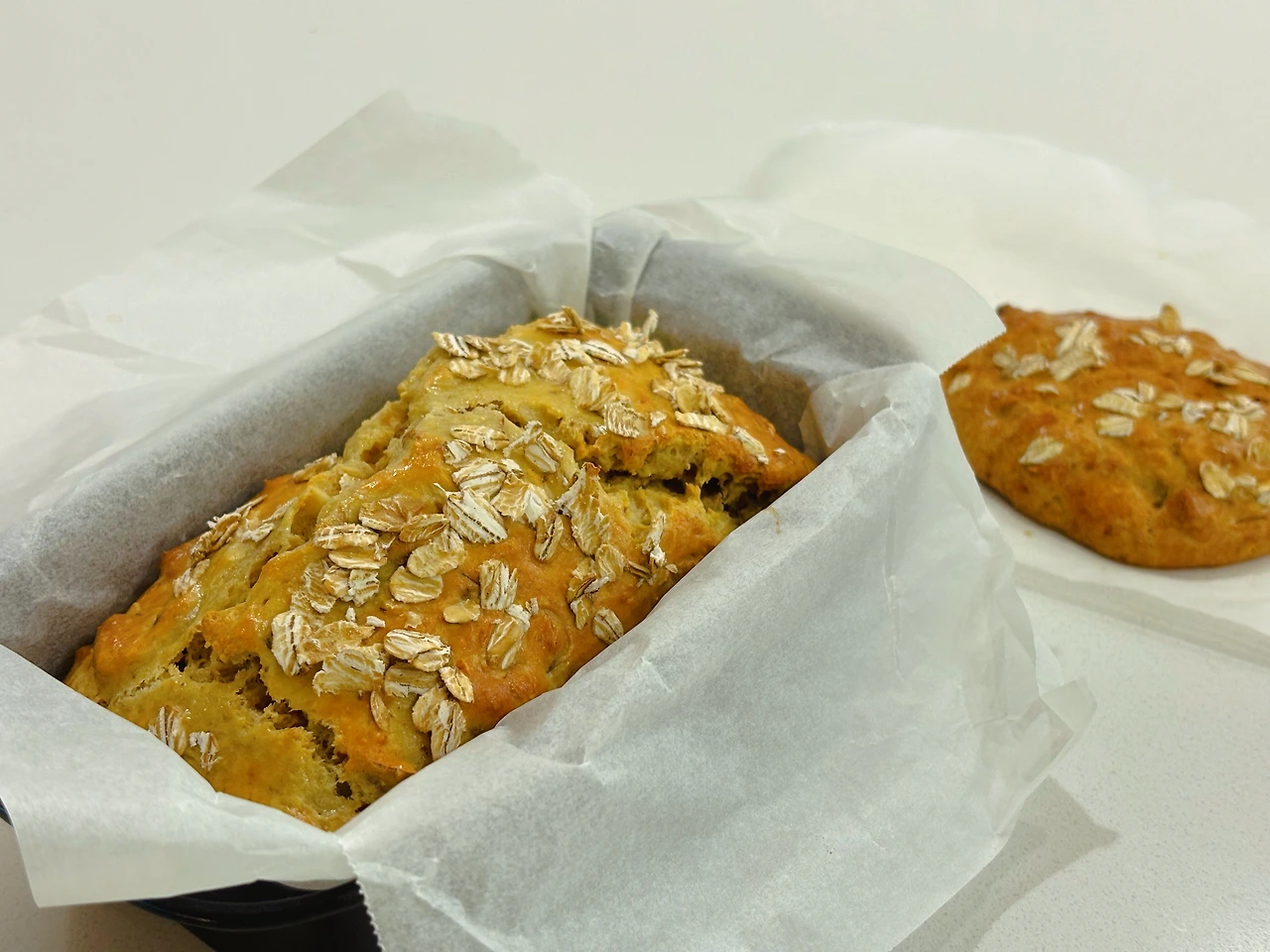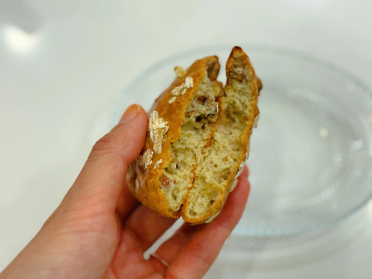 여러 레시피를 조합해서 만들어 본 오트밀빵. 견과류의 고소함이 좋아서 그냥 먹어도 괜찮은 빵이 만들어졌다. 개인적으로는 약간 간이 심심한 느낌이 있었는데, 취향에 따라 소금의 양을 조금 늘려도 괜찮을 것 같다.