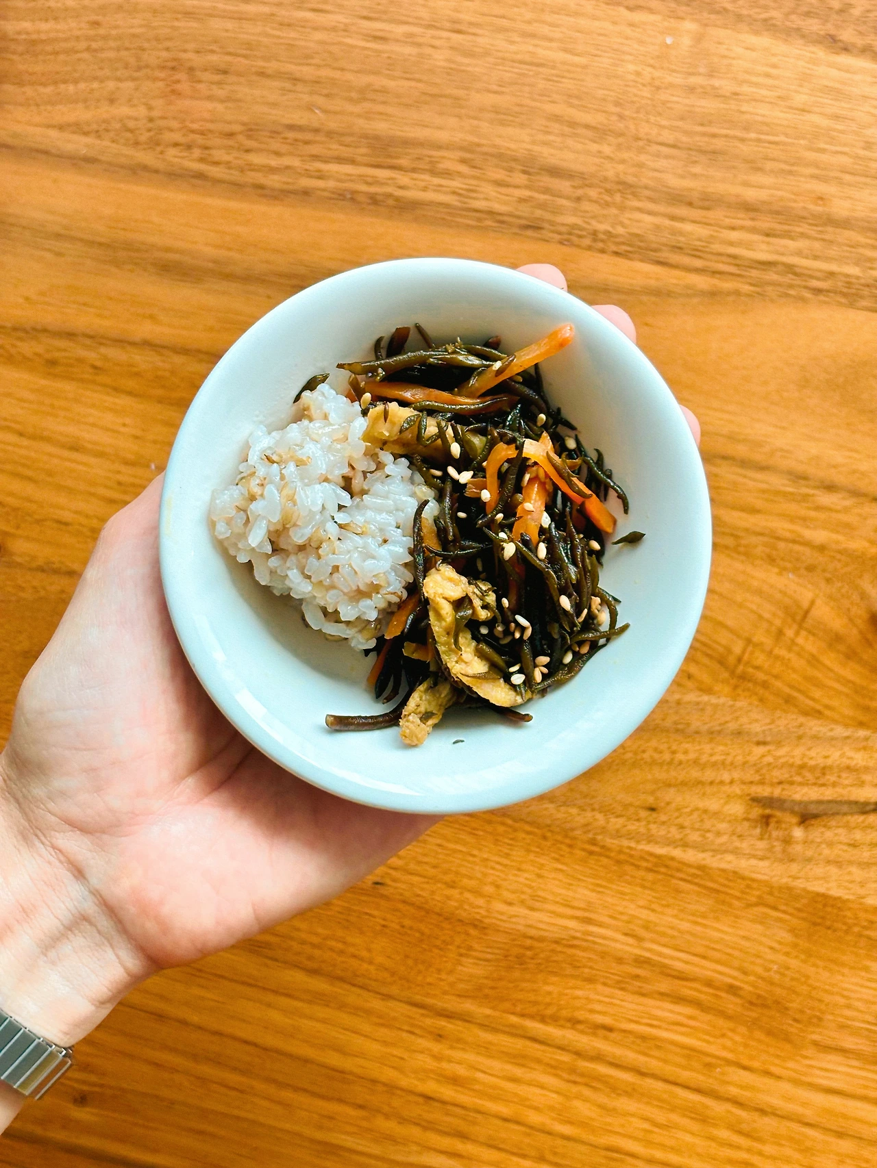 카뮤트, 아마란스, 현미를 섞어 지은 밥과 함께 점심 한 끼를 먹기도 한다. 물론 흰쌀밥과 먹었을 때 가장 맛있긴 하다.