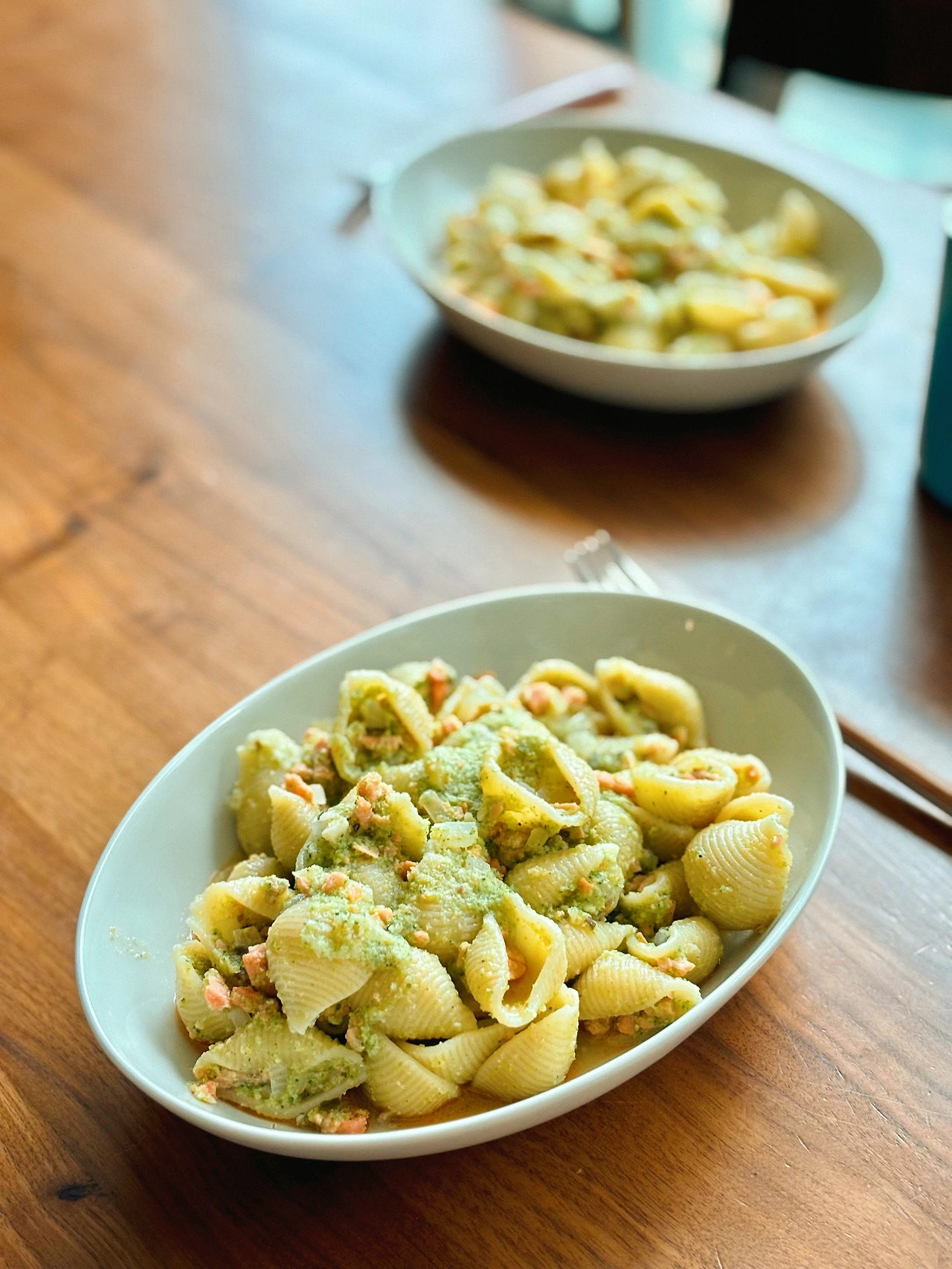 마지막에 그라나파다노 치즈를 살짝 뿌려서 먹었는데 개인적으로는 아주 좋았다. 콘킬리에는 처음 다뤄보는 면인데 오목한 부분으로 소스가 들어차서 재밌기도 맛있기도 한 매력적인 면이었다. 이 레시피와 아주 잘 어울렸다.