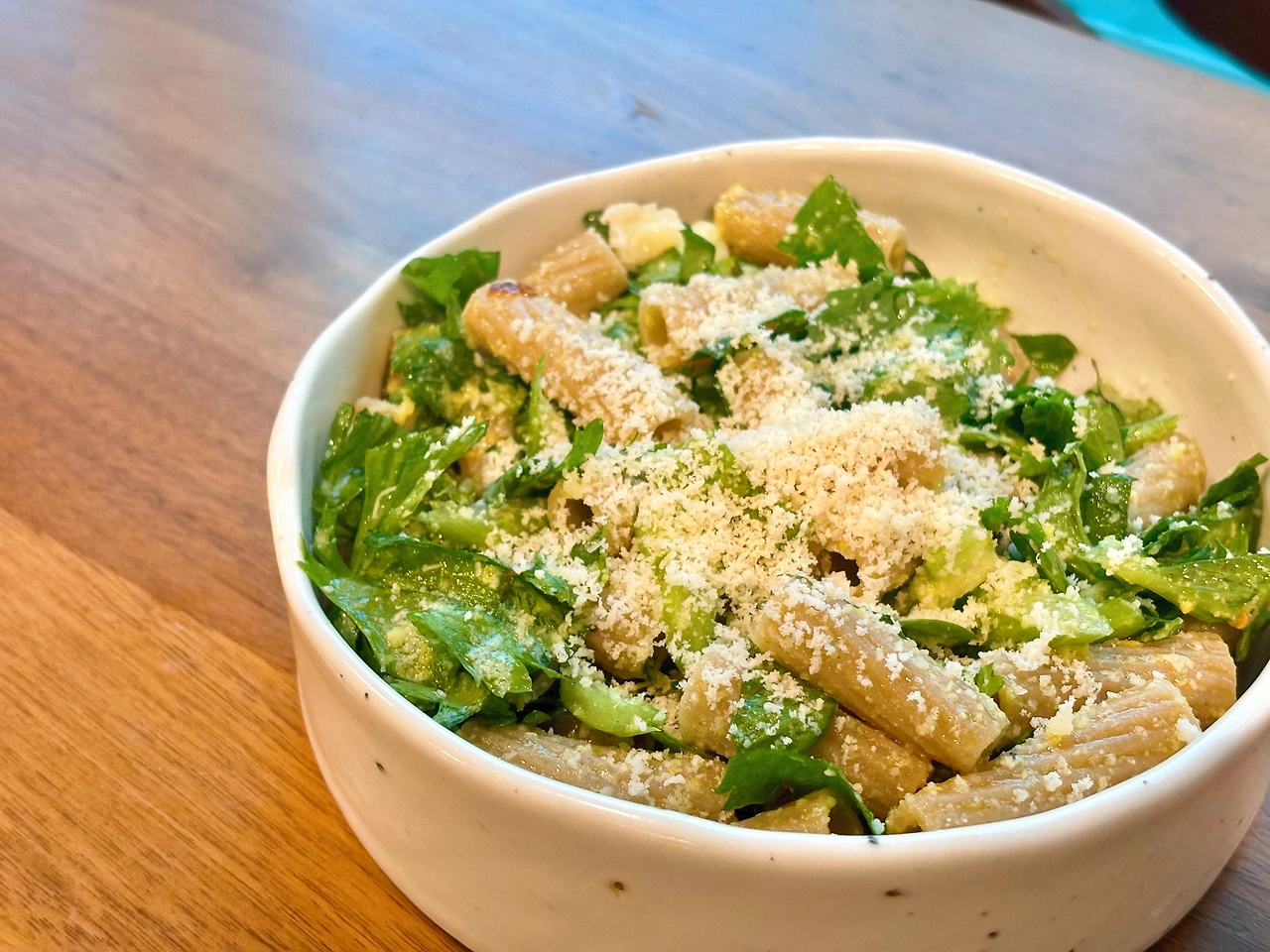 - 삶은 파스타면에 셀러리(or 루꼴라), 레몬제스트, 그라나파다노 치즈를 담고 드레싱을 뿌려 섞는다