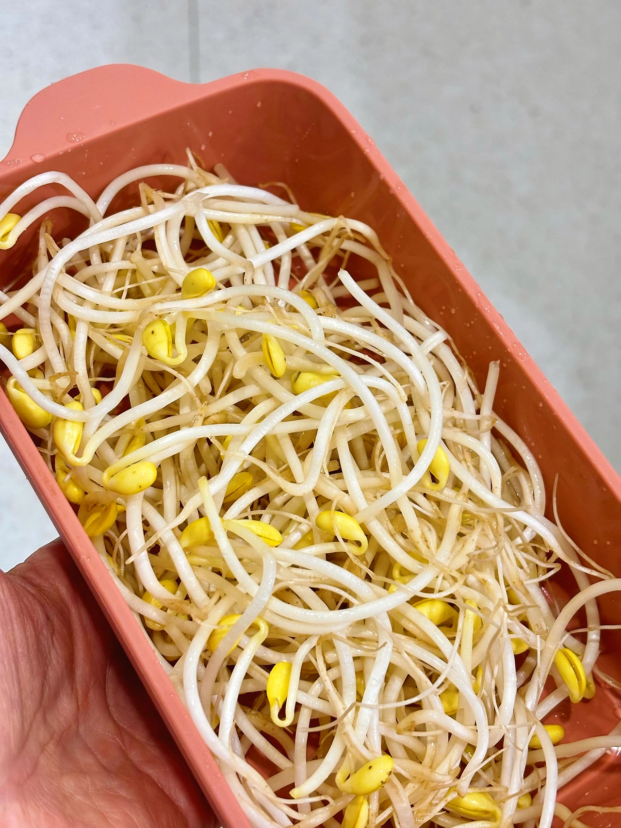 - 잘 씻은 콩나물을 전자레인지 용기에 넣어 3~4분 돌려 익혀준다